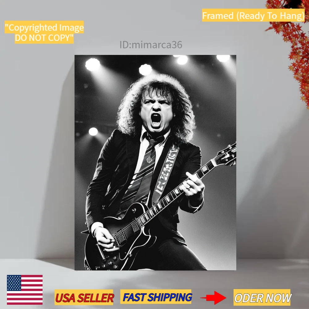 Angus Young ACDC Concert Photo Print on Canvas Wall Art Rock Star Music - framed