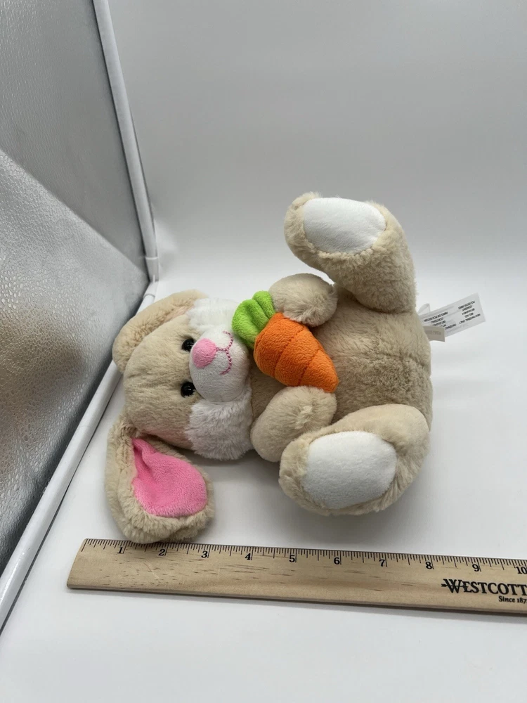 Animal Adventure Tan Plush Bunny Rabbit holding CARROT 2016 Stuffed Animal 8” Used. Item: N29(1)