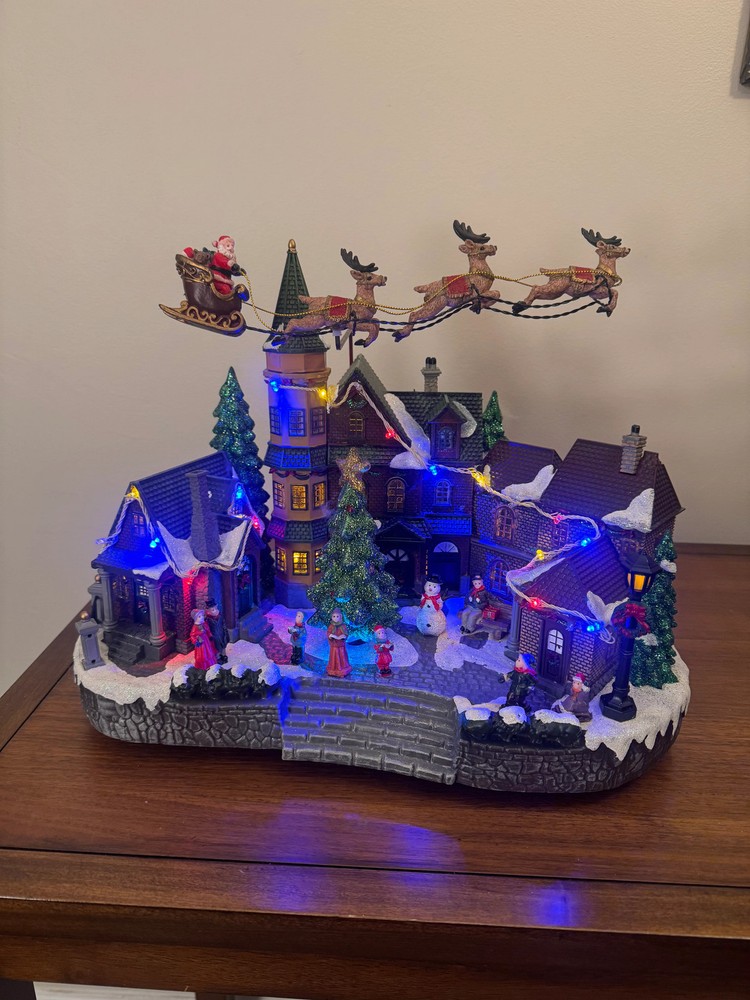 Transform your holiday decor with this enchanting animated LED village from Home Accents Holiday, featuring Santa's Sleigh arriving in town. Perfect for creating a festive atmosphere, this charming collection will delight guests and elevate your home accents. CONDITION: It is pre-owned but in good condition. The music DOES NOT play consistently and breaks up easily; it may be fixed or used as a lighted animated decor. (Sold as is). See the attached photos. Color: Multicolor Materials: Plastic Measurements: 12.8 in. H x 17.6 in. W x 9.15 in D, approximately "All our items are sold as is." We are committed to providing you with the best customer experience and affordable prices. Thank you for supporting our small business and for contributing to a cleaner world.