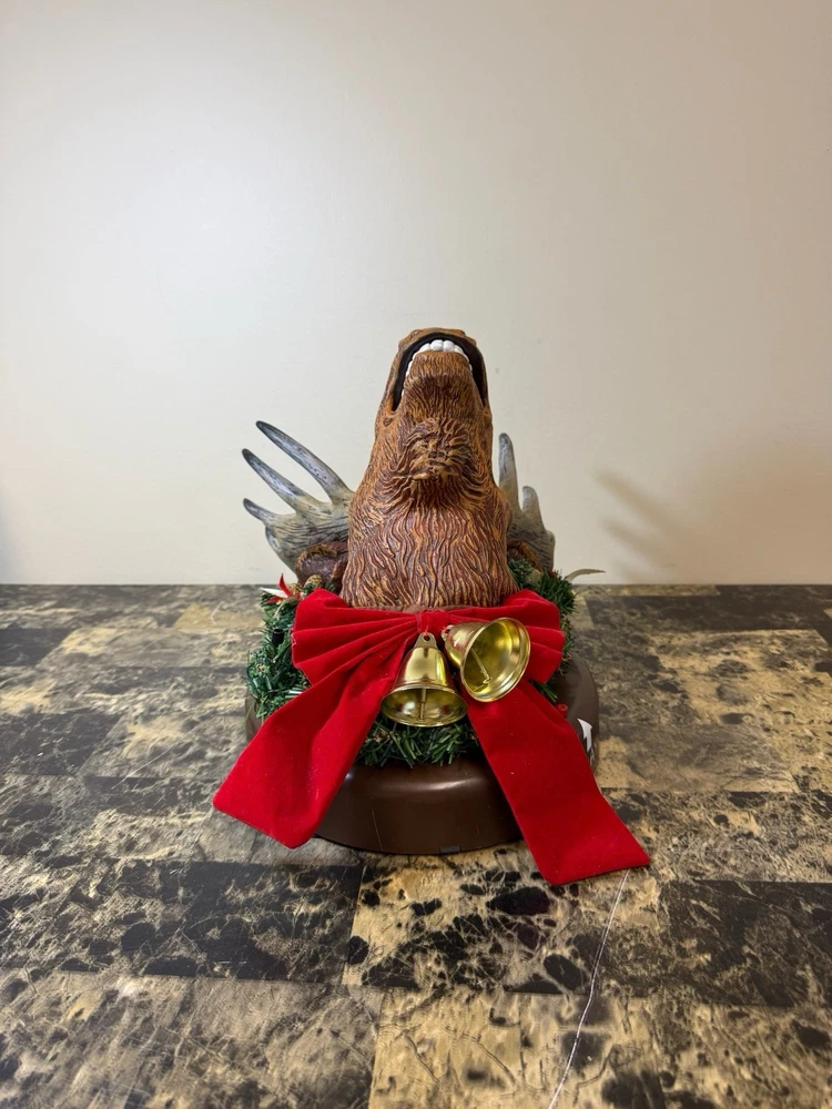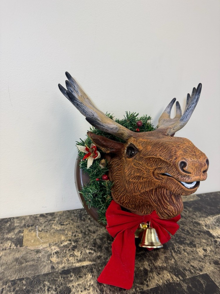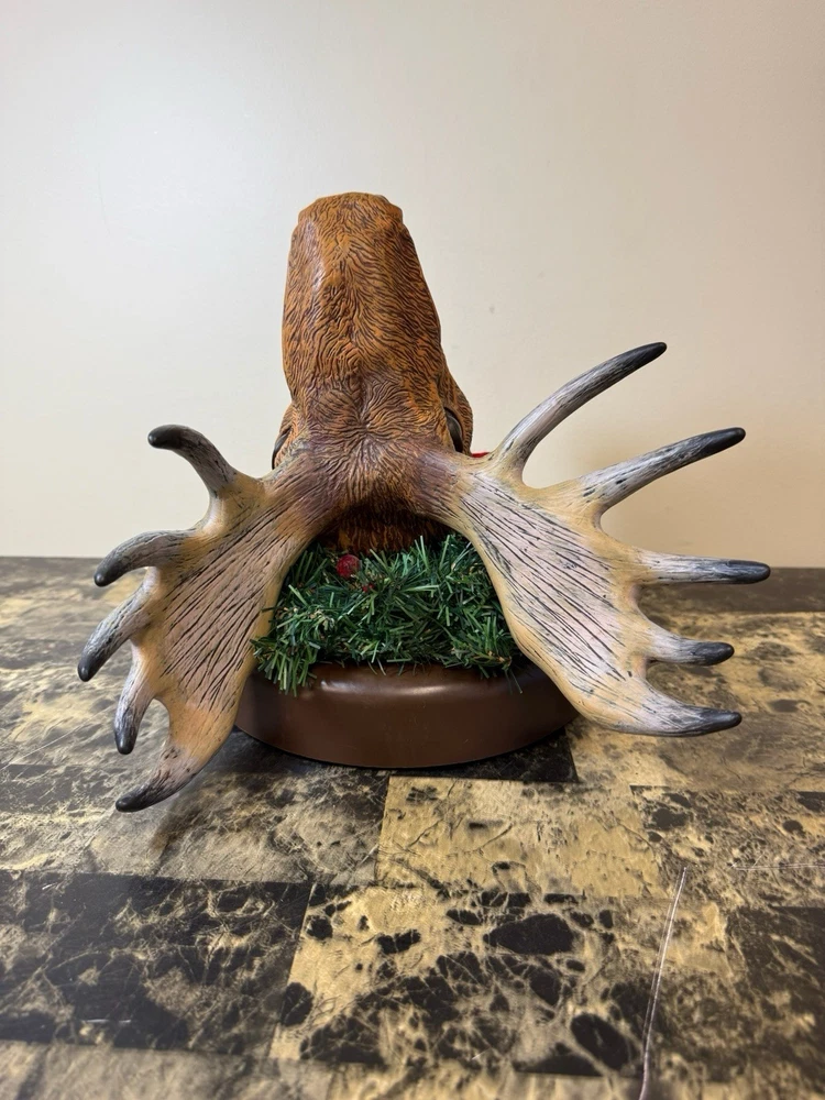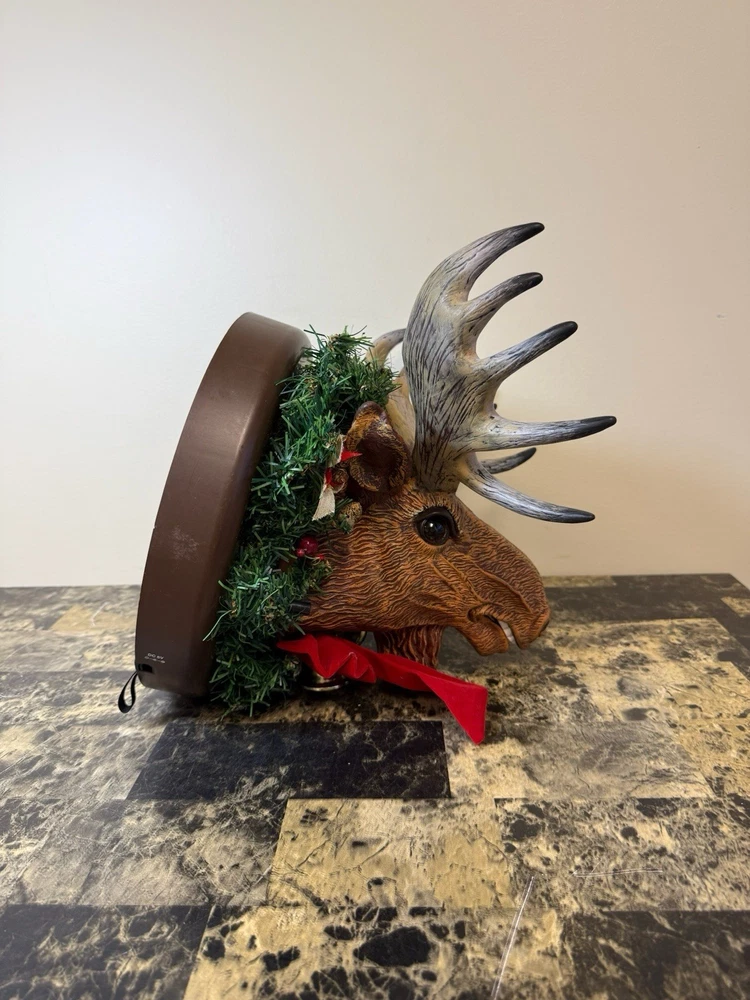 Gemmy presents the Animated Raphie The Singing Christmas Moose, a festive addition to your holiday decor. This charming brown moose is mounted on a wreath and is sure to bring a touch of holiday cheer to your home with its delightful singing tune. The moose is crafted from plastic and has been tested to ensure it works perfectly.