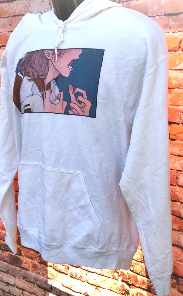 Embrace your love for anime with the Animated Screaming Girl White Hoodie by Gildan. Designed for both comfort and style, this long-sleeved pullover features a classic crew neck and convenient drawstring closure. The vibrant anime pattern adds a unique touch to the 100% cotton fabric, ensuring breathability and softness for all-day wear. Available in a unisex large, this hoodie is perfect for a variety of activities, from basketball to cross training and crossFit. The drawstrings kangaroo pocket provides practical storage and the white color offers a clean, versatile look that pairs easily with any athletic or casual ensemble. The Item/s Pictured ARE/IS The Exact Item You Will Receive. If you like this item, but don't like the price, please feel free to contact me anytime/and or make an offer. Thank You.