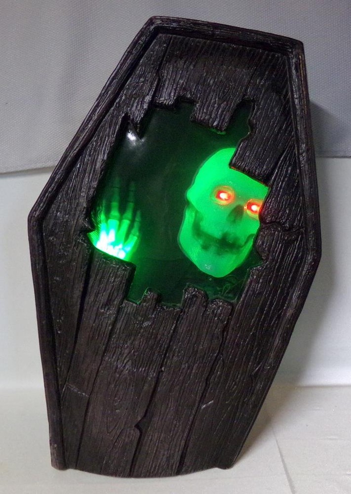 Seasonal Visions Int. Animated Talking Skeleton Coffin Halloween Blow Mold Seasonal Visions Int. Animated Talking Skeleton Coffin Halloween Blow Mold Click images to enlarge Description Lighted, voiced and animated, by Seasonal Visions Int ., plastic blow mold measures 25” tall X 16” wide X 8” deep, good working order, with lighted rocking and waving skeleton. Payment Payment must be received within 3 days. NOTE: PLEASE WAIT FOR INVOICE BEFORE PAYING on auction items (excluding Buy It Now) or you may pay too much for shipping! Items with free shipping need not wait for an invoice. Thank You! Shipping All shipping charges include a handling fee. Insurance is included with handling fee for delicate items. Shipping will be by USPS First Class Mail on items weighing less than 5 ounces, by USPS Priority Mail on items weighing over 5 ounces and in some cases by USPS Parcel Select/USPS Retail Ground on items weighing over 4 pounds (unless USPS Priority Mail is less) for US domestic purchases. US Domestic larger and/or heavier items cost more, so FedEx Home Delivery, FedEx Smartpost and UPS Ground are available options and will be used if found to be cheaper when creating shipping labels. USPS Priority Mail includes tracking. US Domestic shipping is free via First Class Mail for items weighing less than 5 ounces. Please keep in mind there is limited tracking available for First Class Mail and no insurance against loss or damage. International items will be shipped via USPS First Class Mail International for unbreakable items weighing less than 4 pounds, and via eBay International Standard Delivery or Priority Mail International on all others unless requested with conditions. Please keep in mind there is no insurance for lost items and no tracking available for First Class shipping to some countries. Larger, heavier odd shaped items will cost more to ship so take this into account when buying!! Most items will be shipped within 1 day of receipt of payment. I do combine shipping on multiple orders within the same week . All above statements are true unless otherwise indicated on shipping invoice. Terms of Sale All sales are " AS IS " & used so PLEASE LOOK AT THE PHOTOS, READ THE DESCRIPTION & ASK QUESTIONS!!! What you see in the photos is what you will be gettin g unless specifically noted in description . We are not experts in everything & some things may seem to be complete to us but in fact are missing a part that we are not aware of, SO ASK QUESTIONS!!! Items such as art glass & pottery have characteristics that occur from the mfg process. If you can't live with a straw mark in a glass bowl or a flaw in a piece of pottery or art glass please do not buy. Due to editing, colors of items may be slightly different in person. Contact Us You can contact us through eBay Messaging. Get images that make Supersized seem small. Showcase your items with Auctiva's Listing Templates! THE simple solution for eBay sellers. Track Page Views With Auctiva's Counter