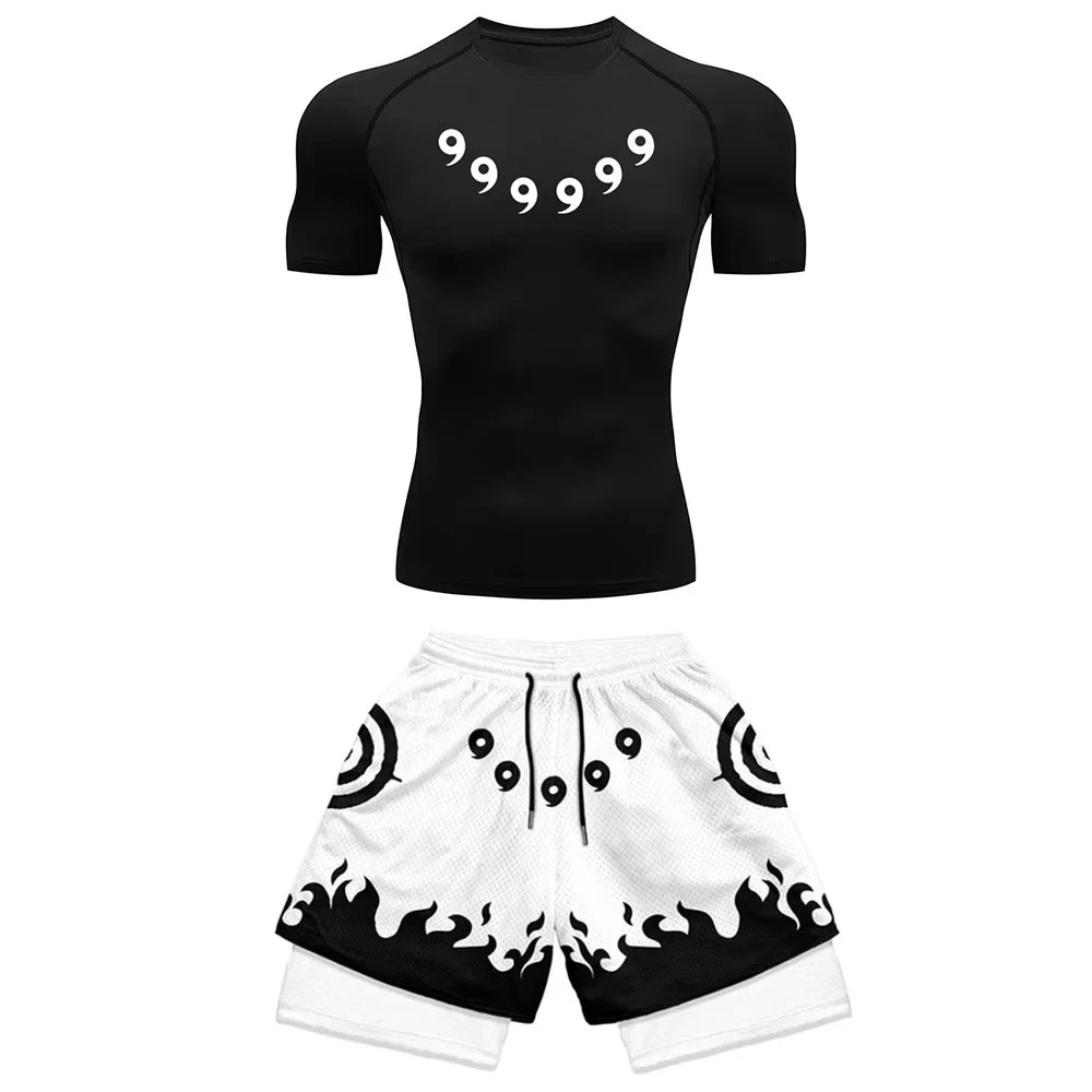 Anime Compression Set Running Sport Fitness Suit for Men Quick Dry Compression S