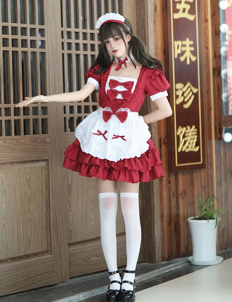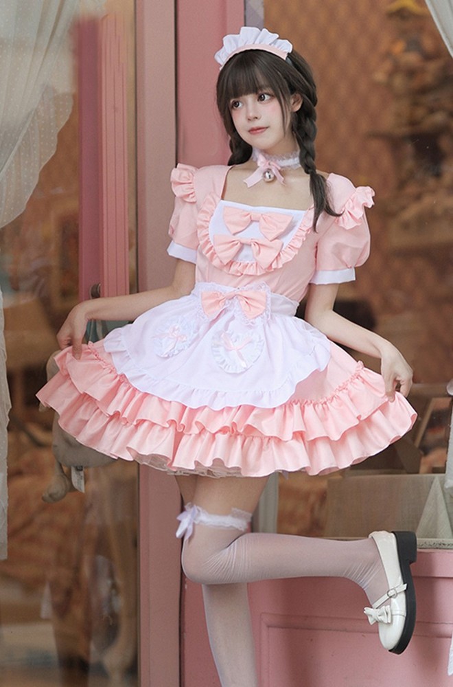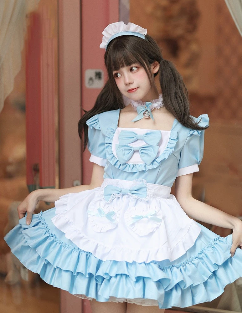 Anime Japanese Lolita Mori Girls Apron Maid Uniform Dress Cosplay Costume Sets