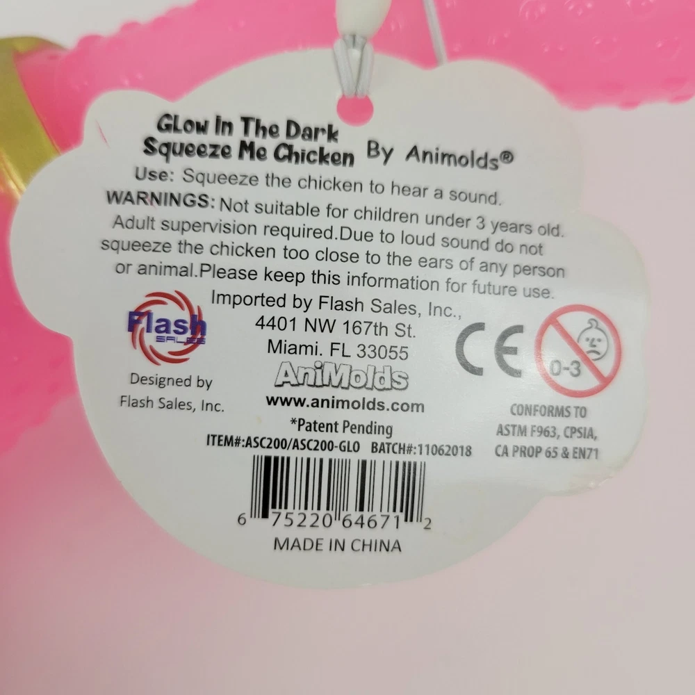 Animolds 13" Squeeze Me Chicken, Screaming Squawking Sound, New