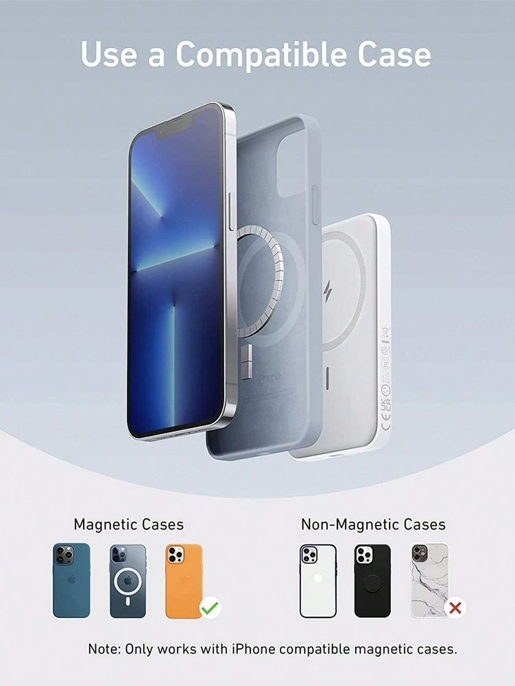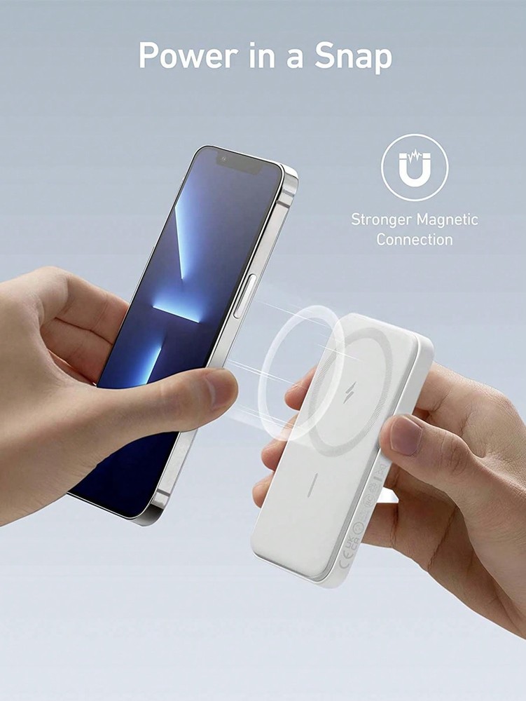 Smaller Than Ever: Anker's new MiniCell technology delivers identical charging performance with fewer components. This means it's smaller and lighter than ever before. Pocket-Sized Power: Slim enough to snap to your phone and slip into your pack, purse, or pocket. Strong Attachment: Equipped with ultra-strong magnets that firmly attach to the back of the iPhone 13 or 12 so you can single-handedly take selfies, make calls, and more. Charge in a Snap: Align your iPhone and battery with a snap. Say goodbye to disconnection issues caused by wireless charging misalignment.