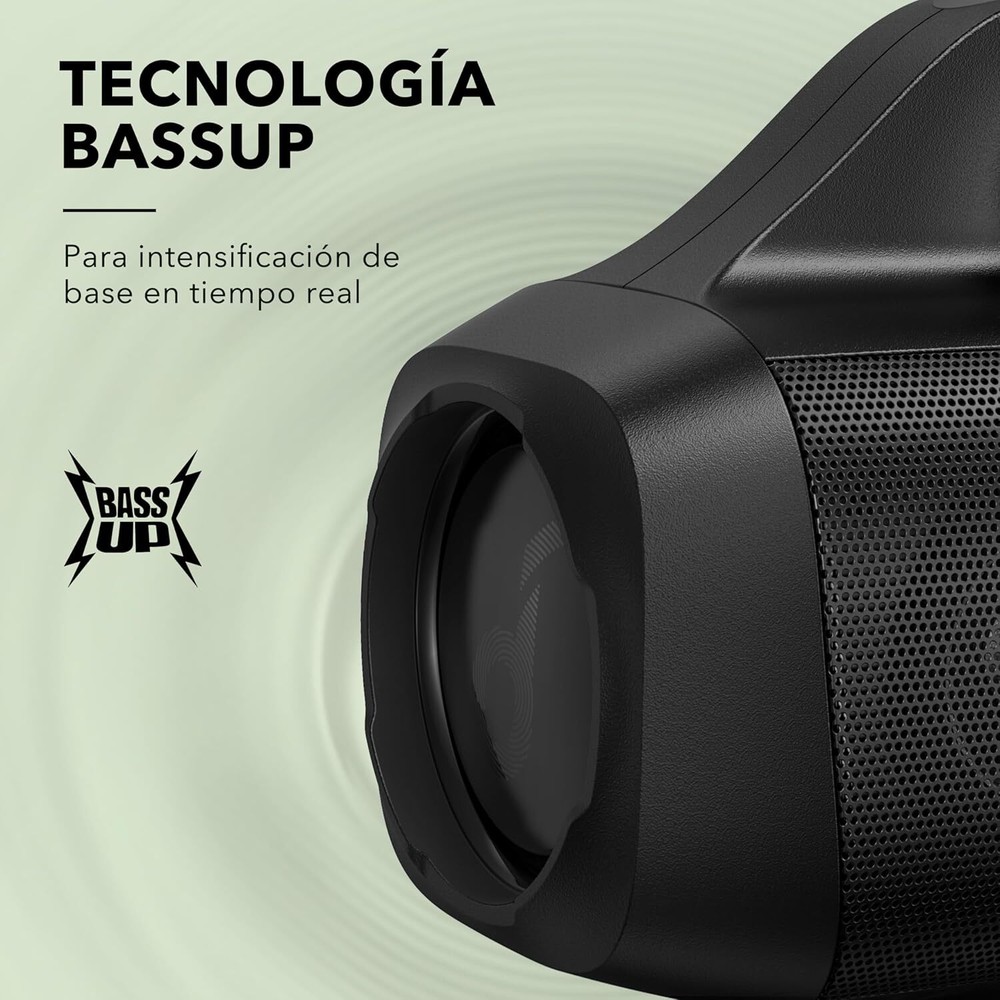 Anker Motion Boom Waterproof Bluetooth Speaker with Titanium Drivers, BassUp Technology, IPX7, 24H Playtime, App, Built-in Handle, Outdoor Speaker Speaker Maximum Output Power 30 Watts Frequency Response 55 Hz Connectivity Technology Bluetooth Audio Output Mode Stereo Incredible Sound Loved by 20 Million+ People Extreme Outdoor Sound: Make a statement with Motion Boom waterproof bluetooth speaker—press play and experience huge stereo sound that’s distortion-free, even at high volumes. 100% Pure Titanium: Motion Boom’s drivers have pure titanium diaphragms to reproduce high frequencies up to 40kHz for sound that has noticeably higher clarity. IPX7 Waterproof and Floats: Don’t freak out if Motion Boom waterproof bluetooth speaker goes for a dip! It’s fully waterproof and floats on water.