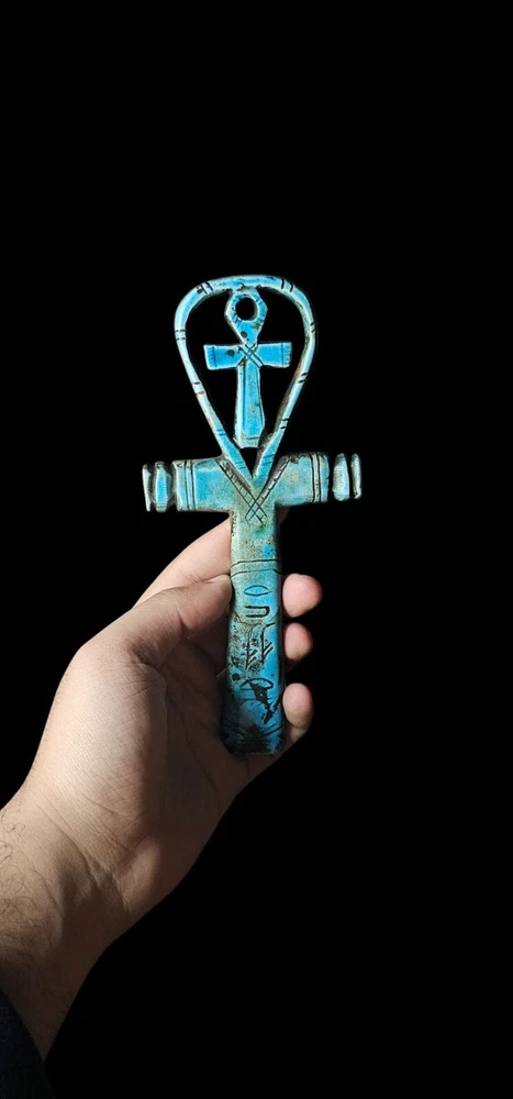 Crafted with care, the Ankh Key Protection Amulet is a unique piece, embodying the ancient Egyptian spirit. Made from multi-colored stone, this amulet showcases the timeless appeal of Egyptian craftsmanship. Its intricate design reflects the storied past, making it a prized addition to any collection. The amulet's origins trace back to Egypt, where skilled artisans created this vintage reproduction with a dedication to preserving the essence of the antique style. While the specific age of the piece remains a mystery, its enduring allure is undeniable, offering a tangible connection to the rich heritage of its country of origin.