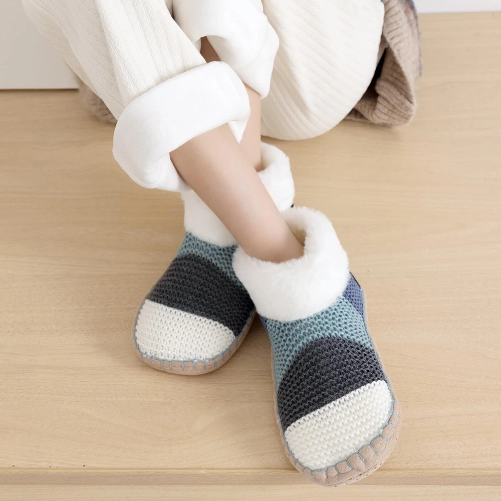 1 Warm, Fleece Lined - Our ankle knit slipper socks is fleece lined inside. These slipper socks for women provide optimal warmth and cozy comfort with the soft, plush fleece lining on the inside, perfect for winter or cooler months, making staying indoors a more enjoyable experience. They are warm and breathable. 2 Low Cut, Easy Put On- The low cut design of these women's slipper socks allows easy put on and take off, ensuring comfort without creating pressure around your ankles. They stay in place, do not slide down and keep your feet warm around the ankles. 3 Soft, Non Slip Bottoms - Designed with your safety in mind, these slipper socks feature non-slip silicone grip dots on the bottom, ensuring stable and slip-free movement on wooden or tiled floors. Don't make a "shlepping" sound when you walk, insulate your feet well from cold floors. 4 Cozy, Light Weight - Despite their warm lining, these slipper socks are lightweight, making them perfect for everyday use. They feel like stepping into a fluffy cloud, providing the ultimate comfort for your feet. A must have for cold feet on a cold winters day. Enjoy the fuzziness of the inner sock. 5 Nice Winter Present - These fuzzy women's slipper socks make a great winter present. Their warmth, comfort, and style make them a fantastic choice for birthdays, Christmas, and other holiday Great for around the house home.