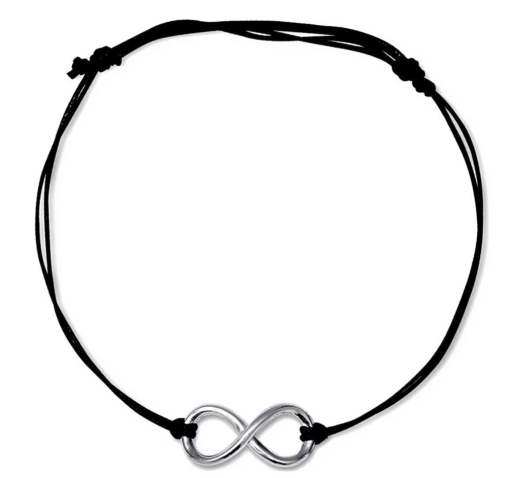 Anklet 925 Sterling Silver Infinity Charm Adjustable Black Thread Anklets