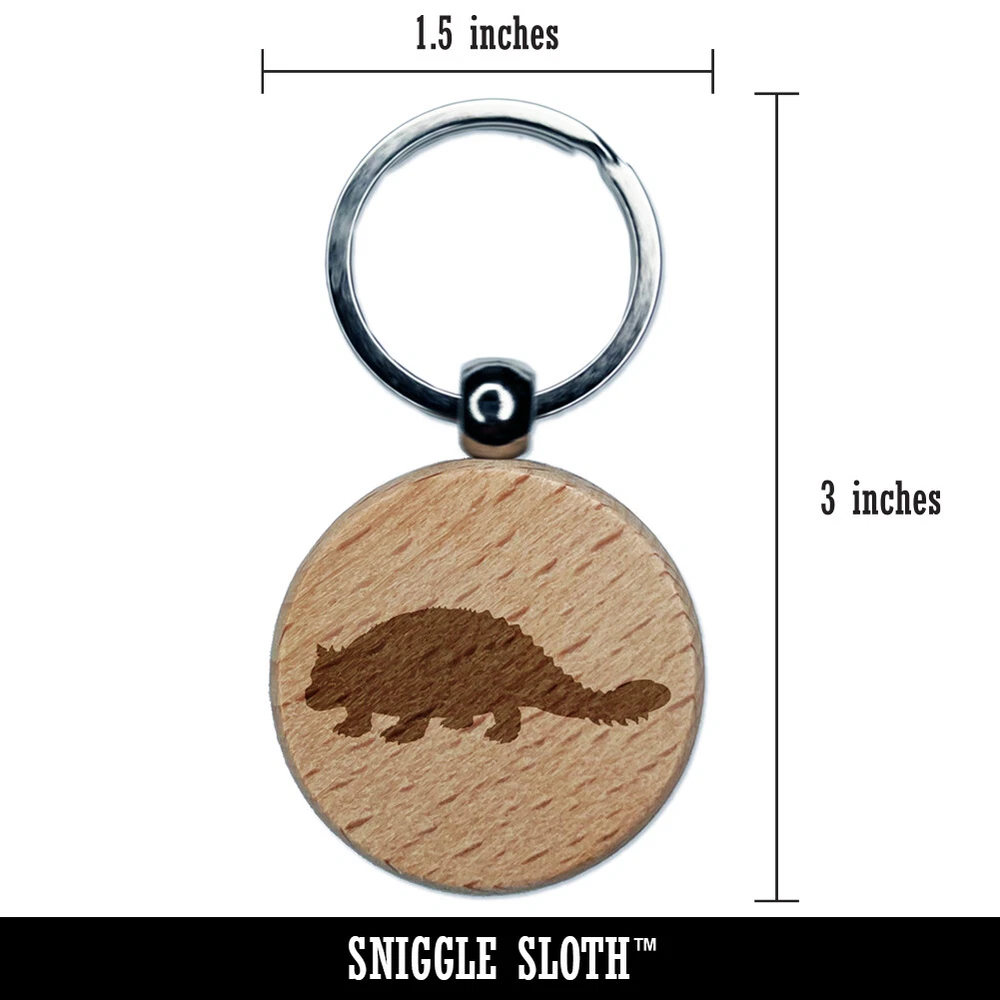 Ankylosaurus Dinosaur Solid Engraved Wood Round Keychain Tag Charm
