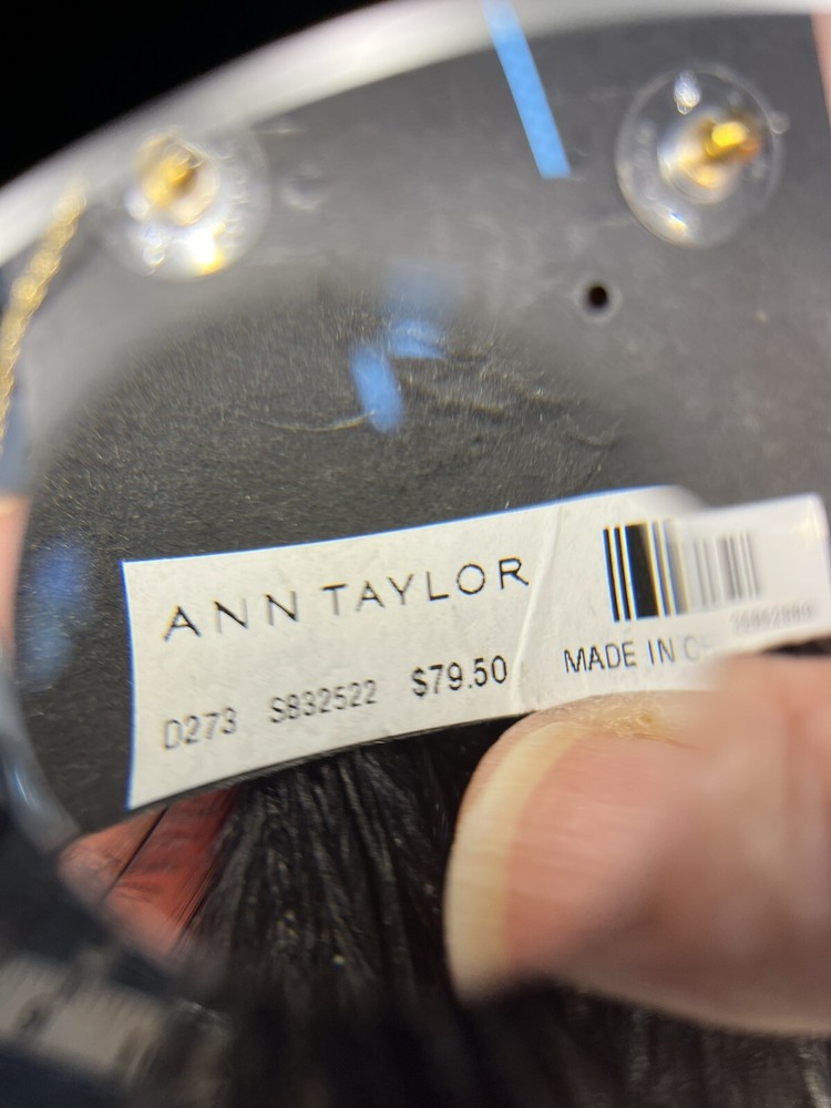 Add a touch of elegance to your outfit with these stunning Ann Taylor earrings. The pavé setting style and crystal with feathers make them a perfect accessory for any occasion. The goldtone base metal and threader closure add a touch of sophistication to the design. The drop/dangle style and clear crystal main stone color make them a statement piece that will complement any outfit. The earrings are perfect for those who value beauty and quality.