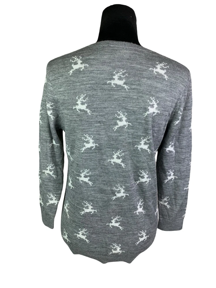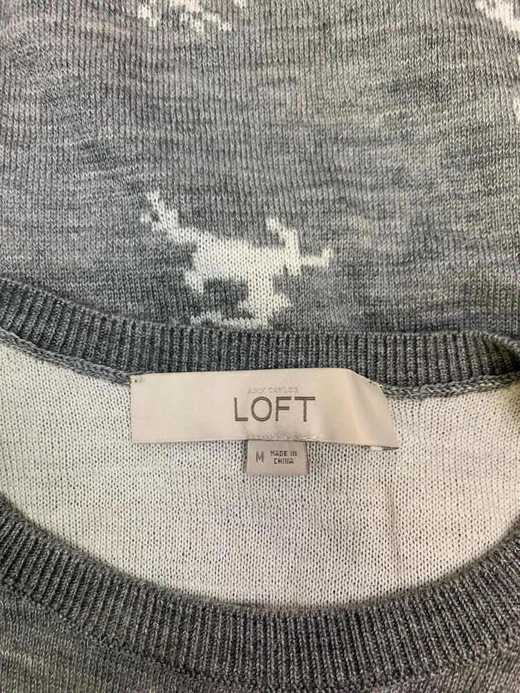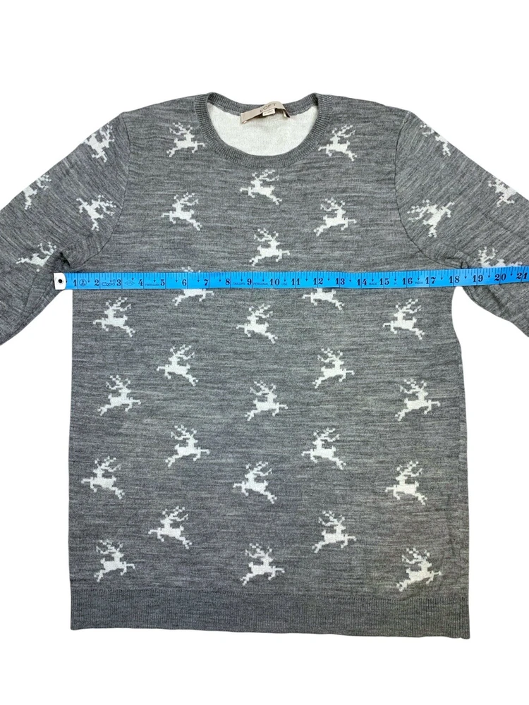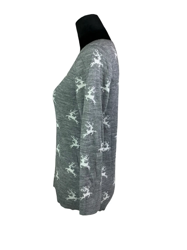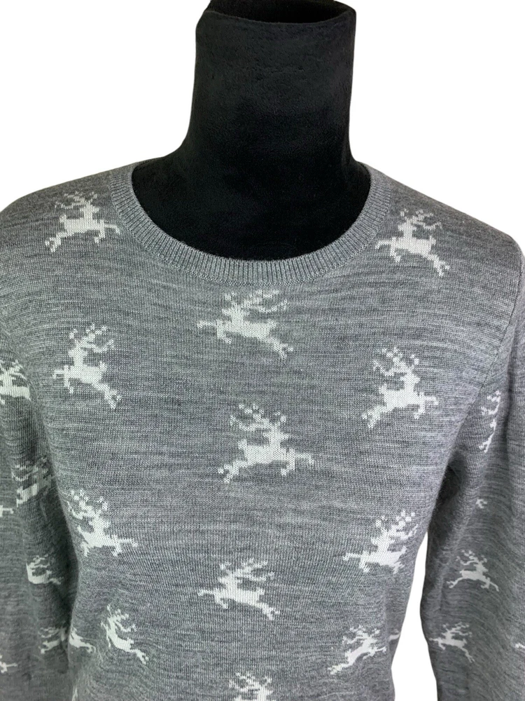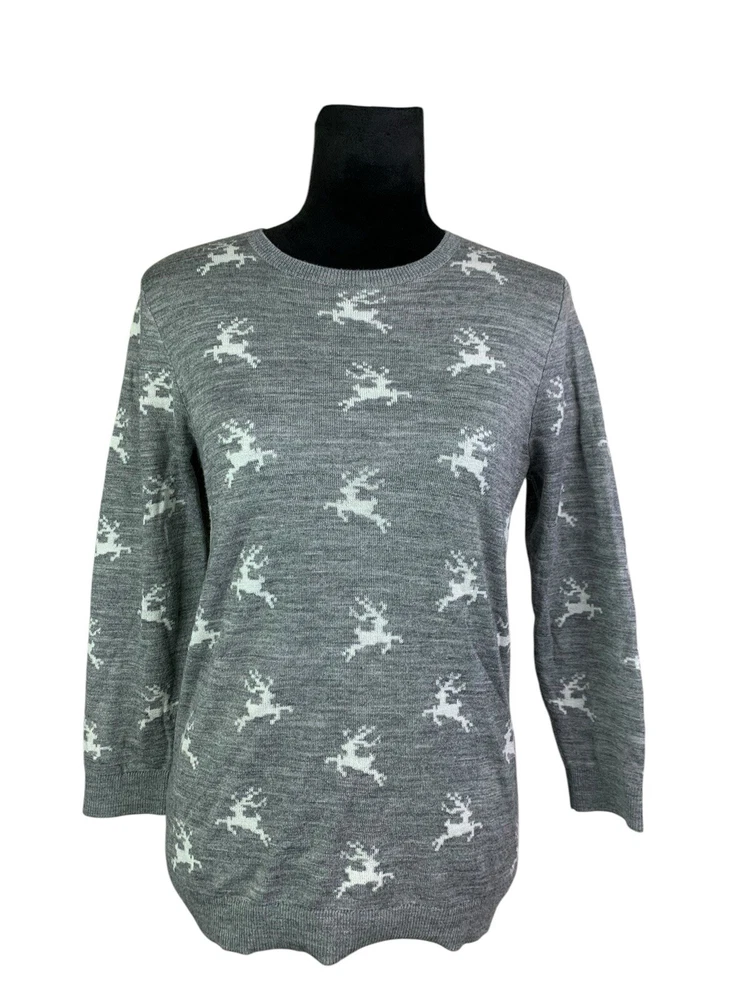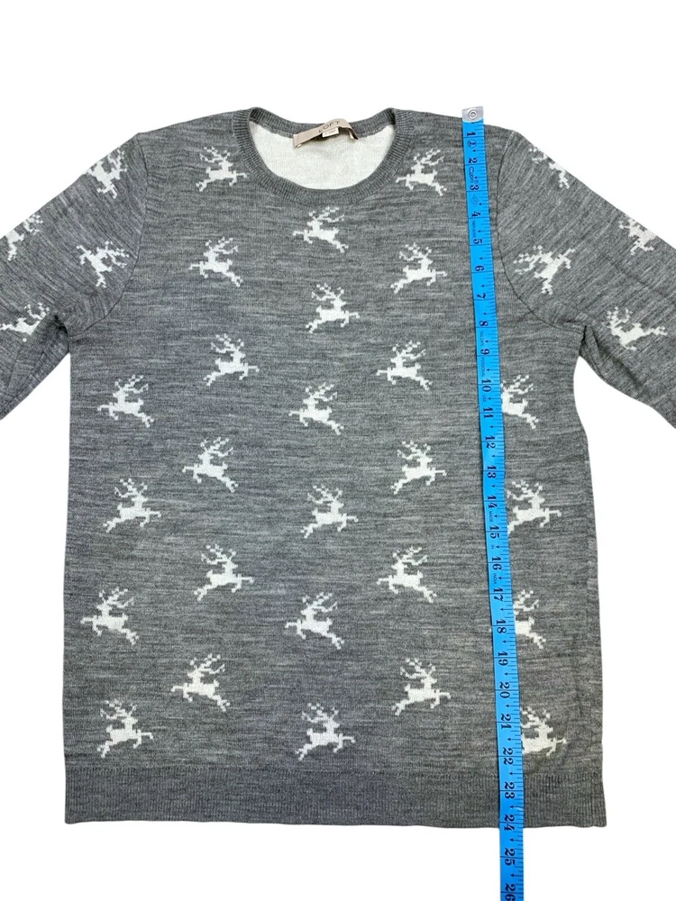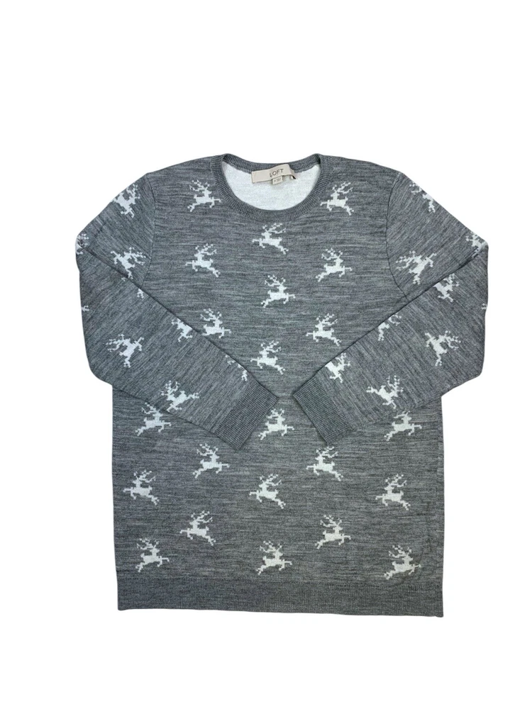 Ann Taylor LOFT Wool Blend Reindeer Sweater Size M Christmas Holiday, Gray