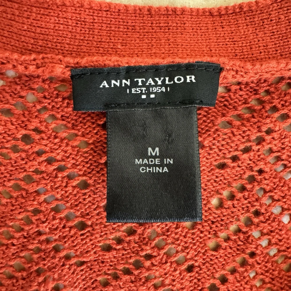 Size Type: Regular Garment Care: Machine Washable Pattern: Solid Color: Orange Fit: Regular Knit Style: Open-Knit Style: Cardigan Size: M Features: Lightweight Fabric Type: Knit Type: Sweater Material: 100% Cotton, Cotton Vintage: No Sleeve Length: 3/4 Sleeve Season: Fall, Spring, Summer Accents: Button Theme: Classic, Colorful Brand: Ann Taylor Seller Notes: “pre-owned ~ view photos ~ no visible flaws” Personalize: No Occasion: Casual, Travel Neckline: V-Neck Department: Women Country/Region of Manufacture: China