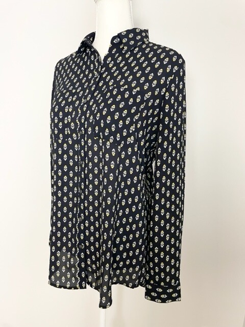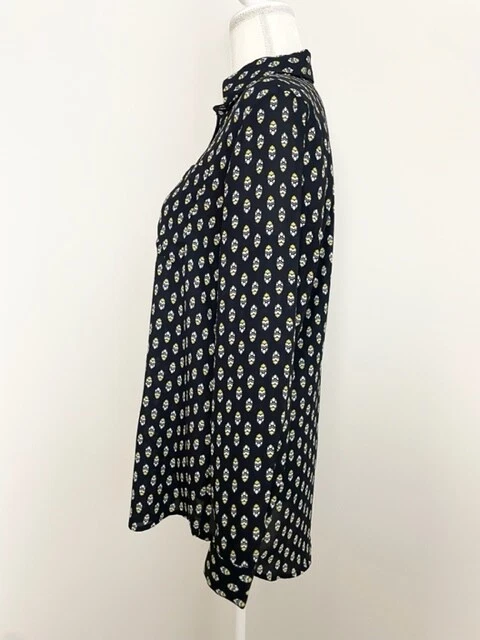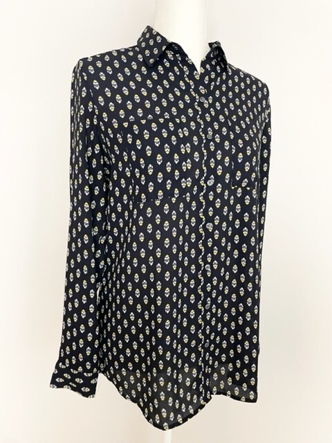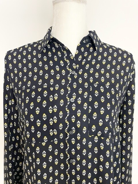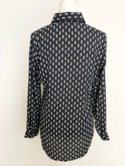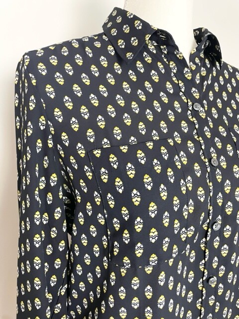 Ann Taylor Womens Button Down Blouse Size S Black Yellow Long Sleeve Pockets