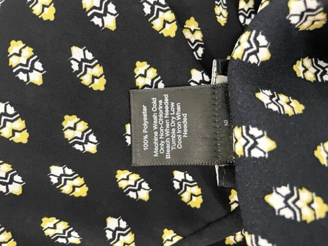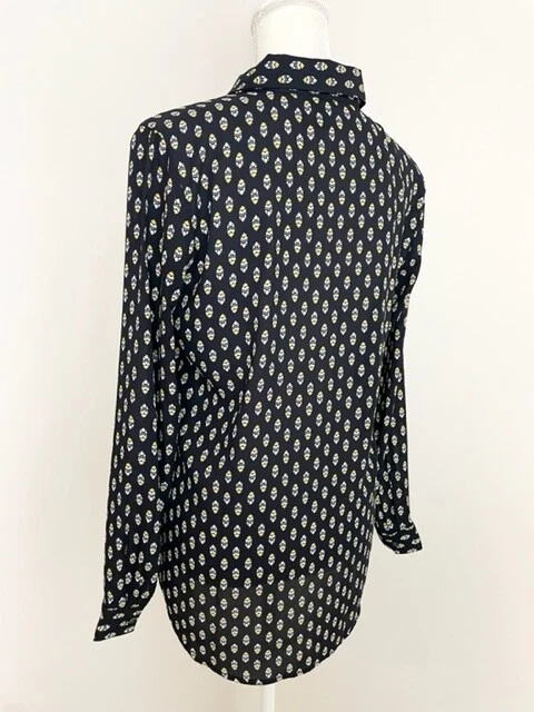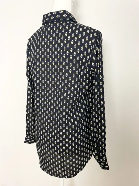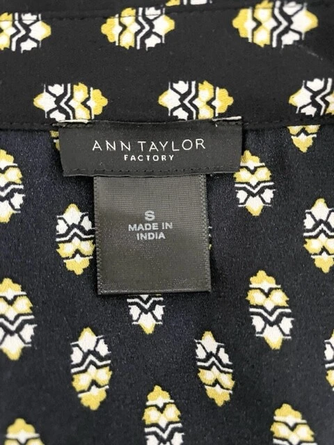 Item Details: Ann Taylor Factory Womens Button Down Blouse Size S Black, White and Yellow Geometric Pattern Front Chest Pockets Long Sleeves 100% Polyester Machine Washable Excellent Condition! Measurements are Approximate: Armpit to armpit measures 20" Shoulder to hem measures 28" Please see photos as they are part of the description. Please feel free to message me with any questions. Thank you! For more great items visit our store at https://www.ebay.com/str/bcstylehouse