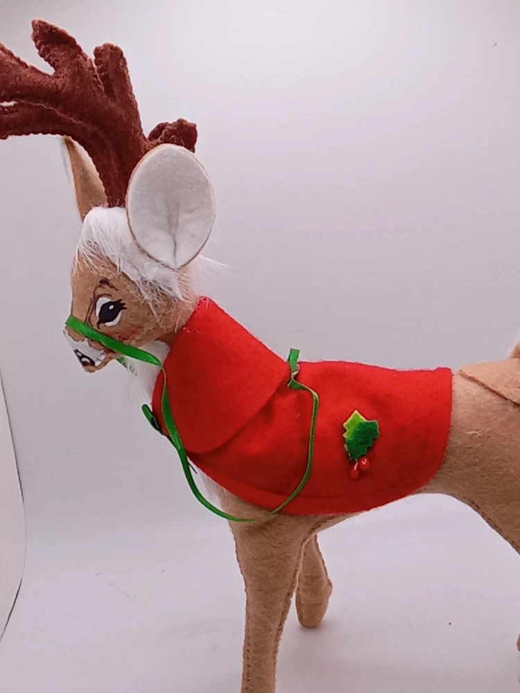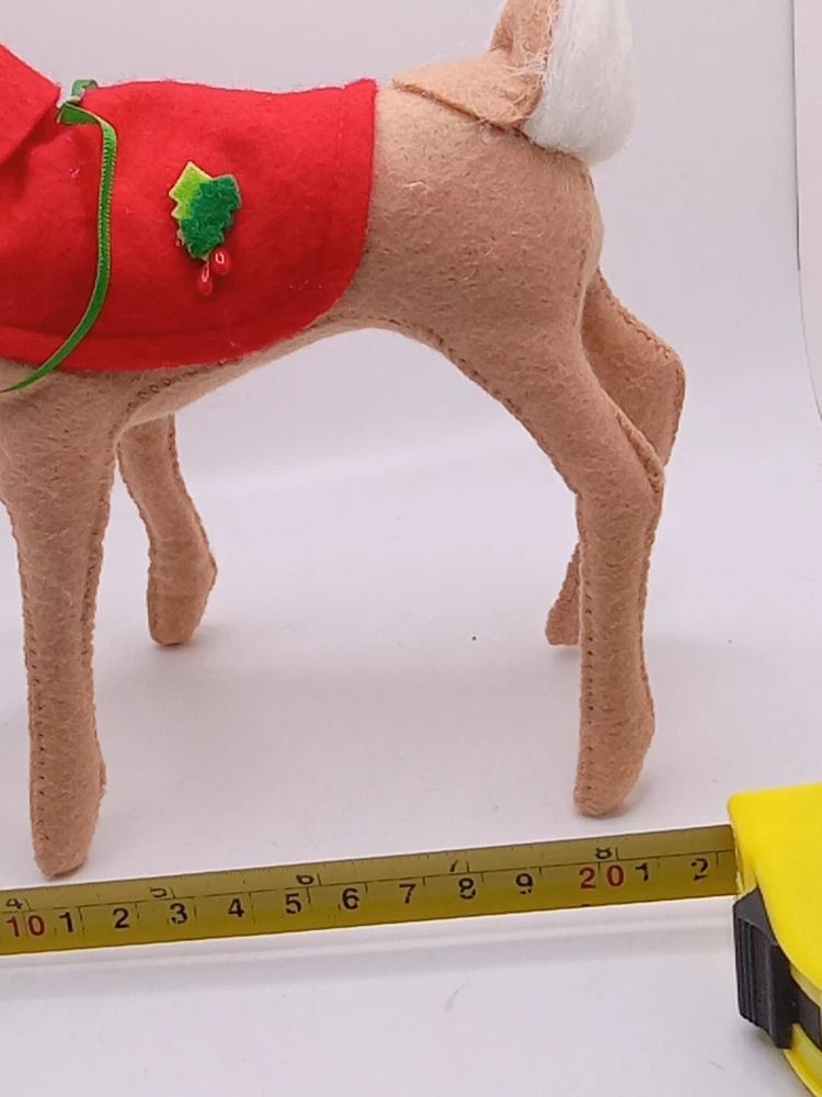 Celebrate the holiday season with this delightful Annalee Santa's Reindeer figurine. Crafted from high-quality fabric, this medium-sized collectible features a cute and cuddly reindeer with a festive Santa Claus hat. Measuring 8 inches in length and 10 inches in height, this AnnaLee brand figurine is perfect for any Christmas tree or holiday display. The retired figurine is a must-have for any collector or fan of Annalee's work. With its intricate details and adorable design, this figurine is sure to bring joy and cheer to any occasion. Add it to your collection today and enjoy its charm for years to come. Please see my other auctions for my other thrift store finds.
