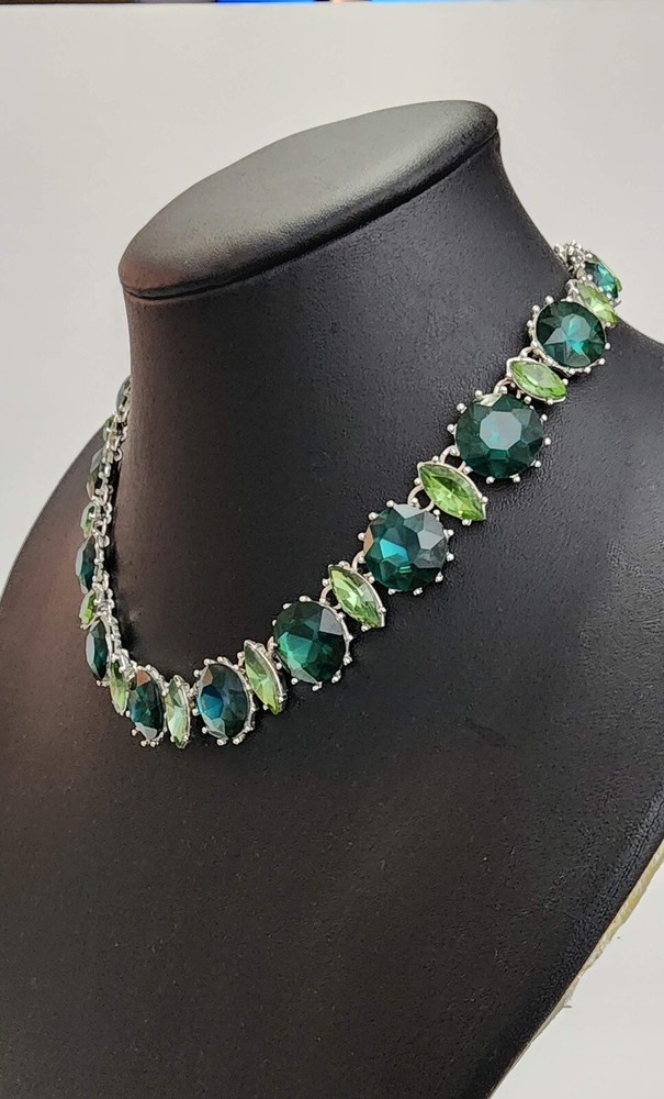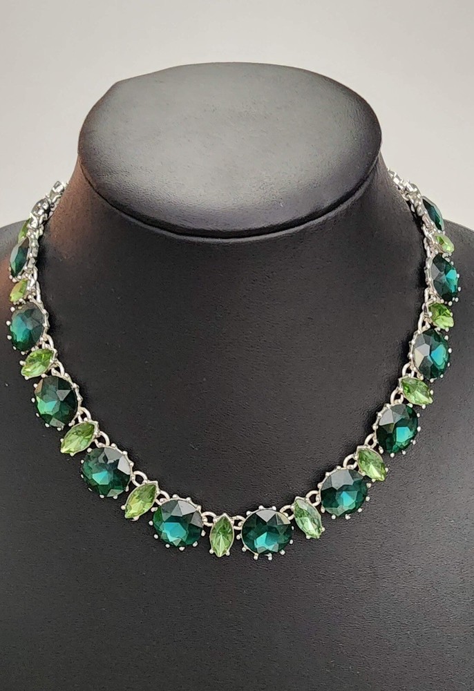 Anne Klein Vintage Emerald Green Crystal Rhinestone Collar Necklace. 17" in length and has a 3" extender. This is a beautiful necklace. It is pre-owned and in very good condition. Thank you for looking!