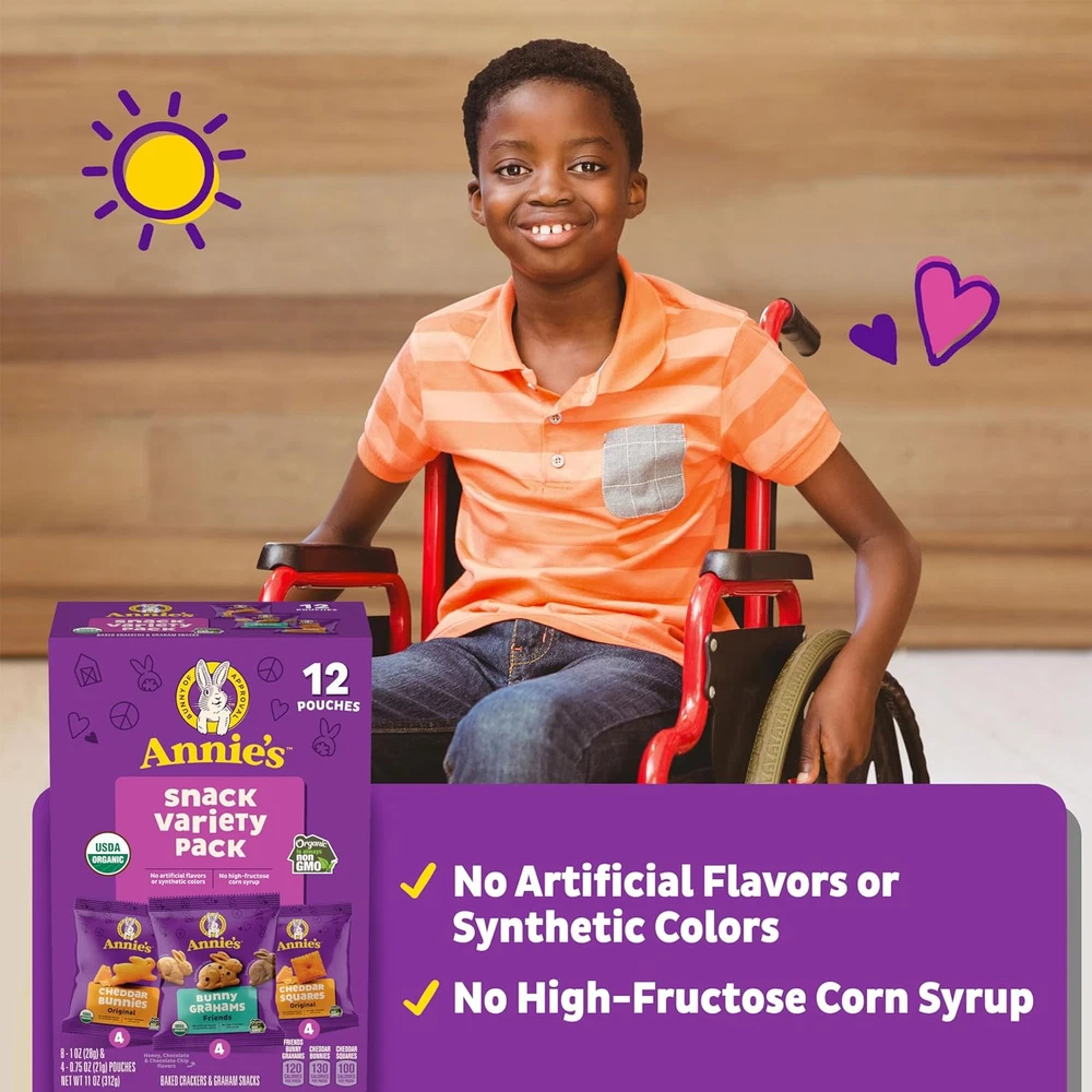 Store New Arrivals Add to Favorite View Feedback Contact Fast deliveries to the customer's home Quality customer service John Make the customers happy! Annie'S Organic Variety Pack, Cheddar Bunnies, Bunny Grahams and Cheddar Squares, Stocking Stuffer, 12 Pouches, 11 Oz Description ANNIE'S SNACKS VARIETY PACK: Three snackable, tasty options - Cheddar Bunnies, Bunny Grahams and Cheddar Squares WHOLESOME INGREDIENTS: They're made with no artificial flavors or synthetic colors CERTIFIED ORGANIC: Certified organic ingredients for the goodness you'd expect from Annie's Organic snacks QUICK AND EASY SNACK: Take these snacks to soccer games, field trips and more to satisfy sweet or cheesy cravings CONTAINS: One 11 oz Variety Pack of Annie's Organic Variety Pack, Cheddar Bunnies, Bunny Grahams and Cheddar Squares; 12 pouches Your favorite Annie's Organic Snack Packs come together in one hoppy variety pack. With Cheddar Bunnies, Cheddar Squares and Friends Bunny Grahams, there's a tasty kids' snack for everybunny. Whether you want something sweet or cheesy, this pack has your cravings covered. These are the yummy bunnies that are enjoyed by kids, adults and all ages. Each organic snack comes in a perfectly portable pouch for lunchboxes, soccer games and more. Plus, parents will love that these snacks are made with non-GMO ingredients and have no artificial flavors or synthetic colors. Annie's makes products in over 20 family-friendly categories, from fruit-flavored snacks and cereal to mac and cheese. For busy bunnies and families on the go, we help make life a little easier and more delicious by spreading goodness through tasty foods and kindness to the planet. Product Dimensions 3.63 x 6 x 8.88 inches; 11 ounces Country of Origin USA Specialty No Artificial Flavors,Organic Item Weight 11 Ounces Allergen Information Wheat, Milk Flavor Name Crackers & Graham snacks Flavor Crackers & Graham snacks Is Discontinued By Manufacturer No Size 11 Ounce (Pack of 1) ABOUT US We offer the best prices around on high quality products. Our E-store includes media such as books, movies, music and games while offering electronics, toys, sporting apparel, clothing, tools, general home, garden items and more. SHIPPING We are always working hard to ensure your package arrives as soon as possible. Please understand that some factors like weather, high postal traffic, and the performance of shipping companies are outside of our control. We offer free shipping to the lower 48 states and ship within 2 business days of payment, usually sooner. We do not accept P.O. Boxes. Please provide a physical address. For shipping outside of the continental USA, we only use eBay's Global Shipping Program. The item is shipped to KY and then sent to the rest of the world. International customers are responsible for all duties and taxes. Continue to 'check out' to calculate costs for shipping the item to your country. Messages regarding eBay's Global Shipping Program MUST be directed at eBay EXCLUSIVELY. RETURNS We offer a 30-Day Return Policy on items in which you are not completely satisfied with. You have the option of a full-refund or an exchange of the item. No returns are available on items shipped outside of the USA PAYMENT We accept PayPal. CONTACT US This page content is yet to come Please ad us to your favorite seller and visit again later Thank You CUSTOMER SATISFACTION We try our very best to make sure every customer is completely satisfied. If there's a problem, message us! We're happy to help. WE ACCEPT