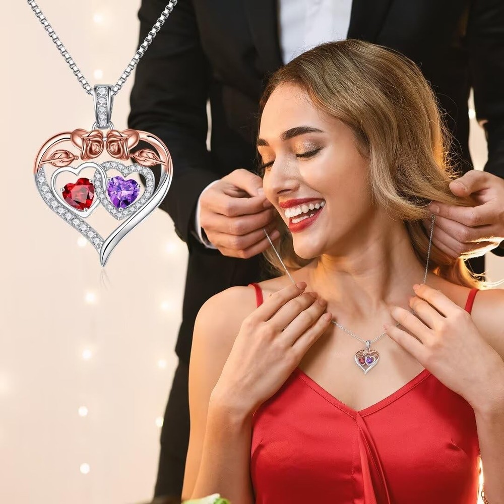 GIFTS FOR WOMEN: The double heart necklace represents the two of you forever tightly held together. This unique rose heart birthstone necklace is the perfect gift for women, mother, grandmas, aunts, sisters, friends, wives. MATERIAL: 925 STERLING SILVER double heart necklace for women rose heart pendant has a lasting layer of protection that minimizes scratches and tarnish-resistant. DAINTY GIFT PACKAGE: The pendant necklace comes with an elegant gift box. No wrapping is needed. Unique Great Mothers Day special gift as a gift for her - your mother, daughter, wife, grandma, sister, Aunt, bonus mom. ROSE FLOWER HEART DESIGN: The unique rose heart design symbolizes eternal love, when she wears this necklace, she will be reminded of your love and all the laughter. AFTER SALES SERVICE: Any question about your Rose Heart Birthstone Necklace, please contact us and we will answer your question within 24hours.