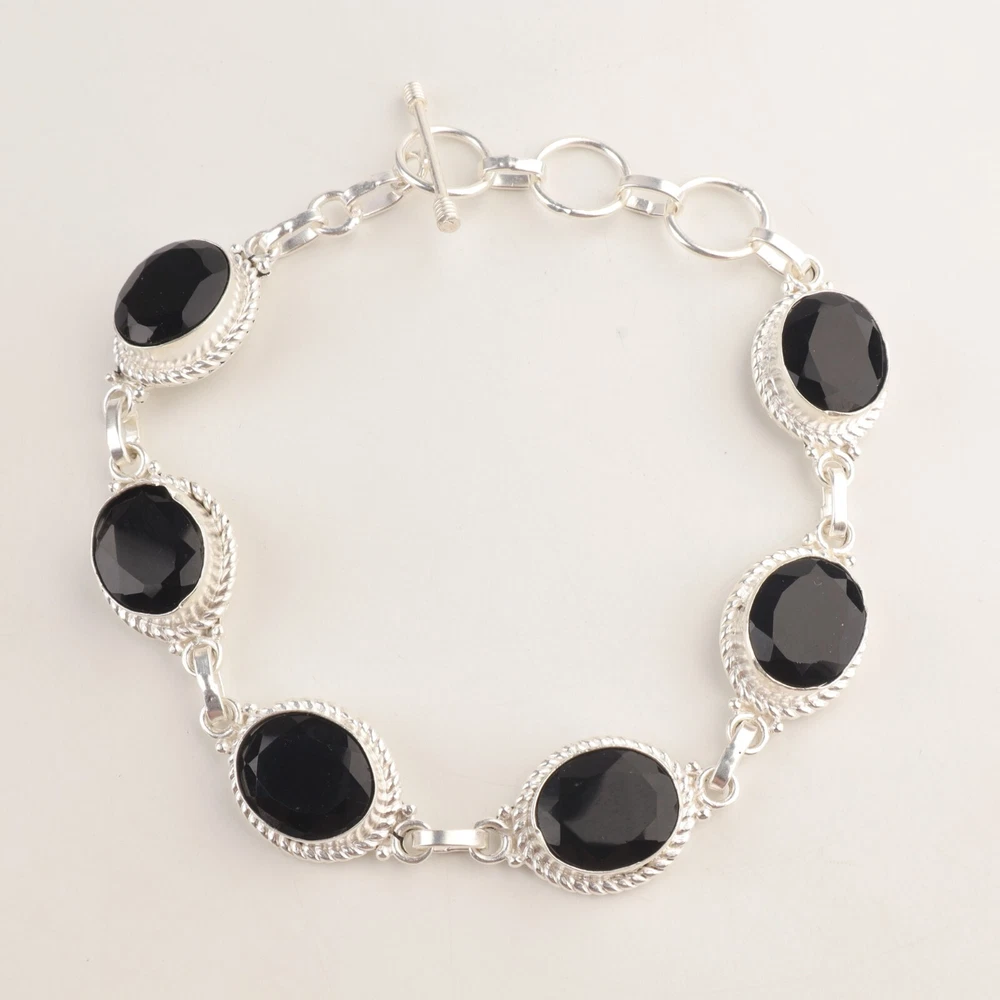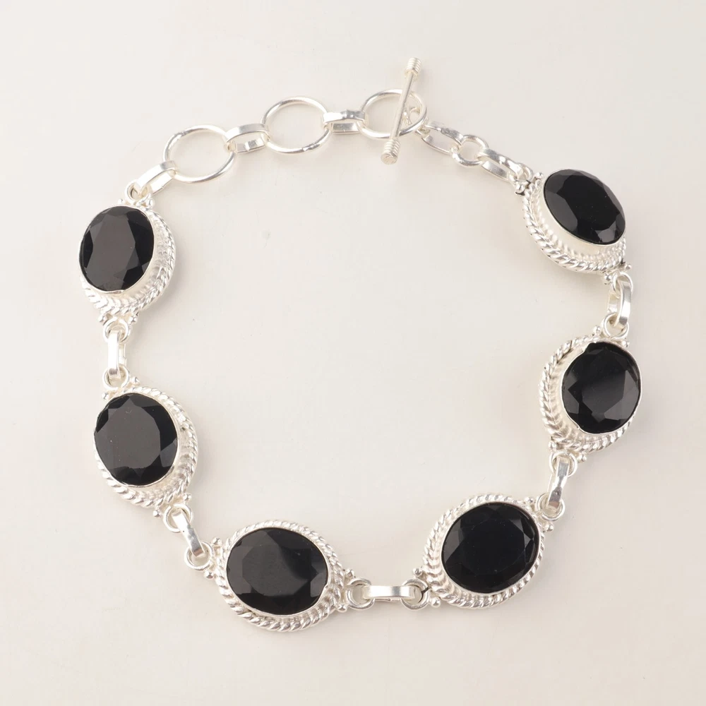 Welcome to Jaipur Silver Gallery Anniversary Gift For Her Natural Black Onyx Gemstone Chain Bracelet 925 Silver Handmade Bracelet, Sterling Silver Bracelet, Black Onyx Bracelet, Handcrafted Bracelet SKU : - JSRB-2-14 Gemstone : - Black Onyx Stone Shape : - Oval Metal : - Sterling Silver Metal Purity : - 925 Bracelet Length : 8.5 Inches Adjustable : _______________________________________________________________________________________ Amazing Properties of Silver ****************************** Tough and Long-lasting: Silver is incredibly strong, built to withstand daily wear and tear as well as tough environmental conditions. Easy to Shape and Design: Silver is like clay for skilled craftsmen, allowing them to create beautiful and intricate designs effortlessly. Great at Conducting Energy: When it comes to heat and electricity, silver is the go-to. It can quickly and efficiently transfer energy, making it ideal for various applications. Keeps Things Clean and Safe: Silver has a natural ability to keep harmful bacteria at bay, making it a reliable choice for promoting cleanliness and well-being. 3 Underrated Benefits Of Silver ****************************** Gorgeous Charm: Silver jewelry shines brightly, enhancing any outfit and fitting everyone's style with ease. Gentle on Skin: Silver is kind to your skin, reducing the chance of allergies and making it a favorite choice for accessories. Healing Vibes: Some believe silver jewelry has a soothing touch, possibly aiding in easing issues like arthritis, anxiety, and the blues. _______________________________________________________________________________________ For Mother's Day Gift For Father's Day Gift For Promise For Valentine' Day For Halloween Party For Christmas Day Gift For New Year Party For Mom For Her _______________________________________________________________________________________ If you need more help or want design tips, just give us a shout! We're lightning-fast in getting back to you. Every single thing we create is made by hand in our special workshop, and we put a whole lot of love and care into every piece. Thank you for stopping by! We're confident you'll have an amazing time shopping with us. We're here to make sure every moment you spend with us is filled with delight and satisfaction. Happy shopping!