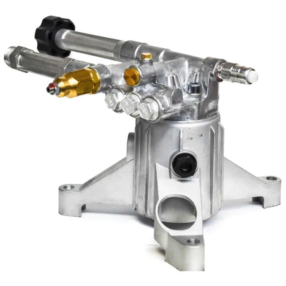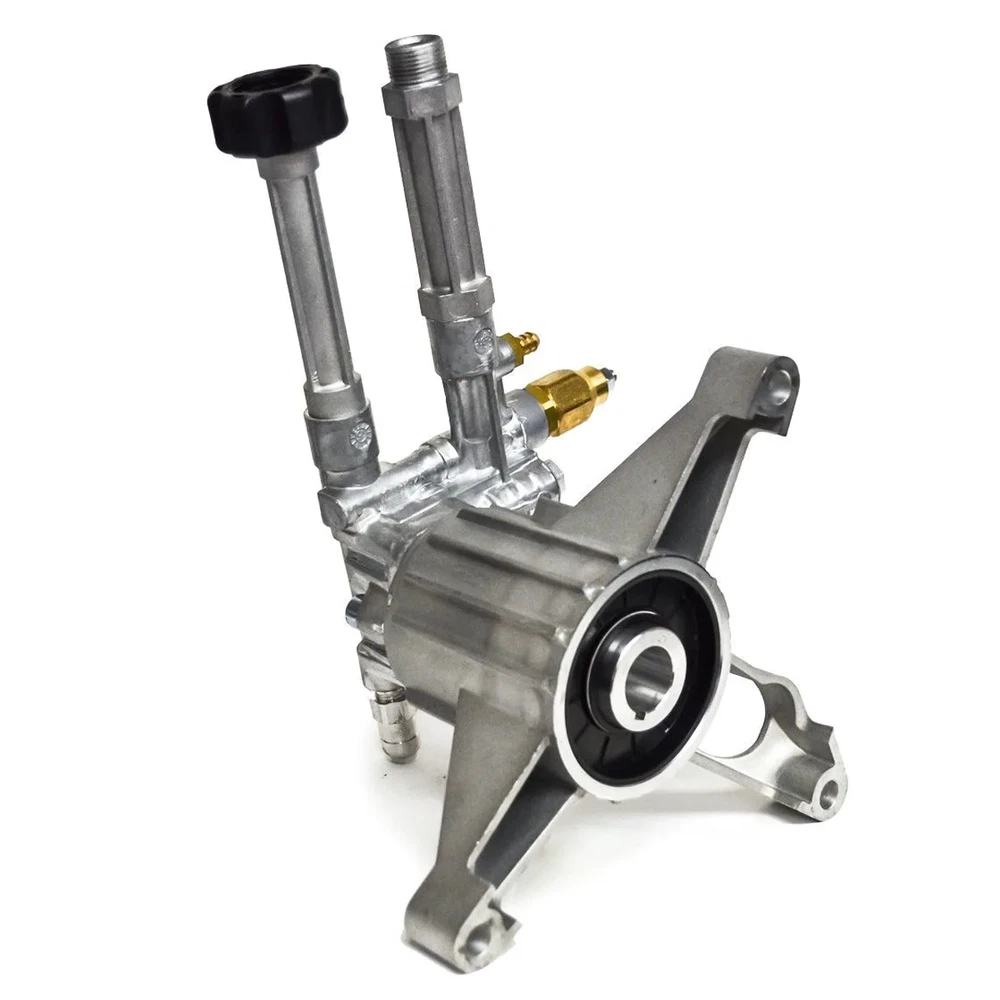 Annovi Reverberi Pressure Washer Water Pump Vertical SRMW2.2G26EZ AR SRMW2.2G26 You are buying (1) brand new Pressure Washer Pump w/ Thermal Release ValveOEM Part Number: RMV2.2G26EZ Annovi Reverberi offers the SRMW22G26-EZ and SRMW22G26-EZ-SX 2,600 PSI triplex plunger pumps in two different mounting configurations. This pump is for vertical gas engine driven units. Please reference the pictures below showing the mounting difference between the two models. Specifications: 2.2 GPM at 2,600 PSI and spins at 3,400 RPM. This pump mounts directly on to the engine shaft by using a keyed hollow shaft connection system. The mounting flange provides a convenient connection to most 7/8” diameter shaft vertical gas engines in 4 - 7 HP (reference the cc to HP chart) and fits most OEM carts. The pump includes a built-in pressure control valve, downstream chemical injection system, EZ start valve and thermal relief valve.Features/Specs:The "S" version has upgraded grade valvesComes with Easy Start Valve (EZ)Thermal relief valve included3-piston alternating volumetric pumps for use on cleaning unitsCan be directly coupled to various types of motorsDifferent delivery connections availableOptional detergent suction systemIntegral regulating valvePump body in die-cast aluminum alloyPistons driven by swash plate mechanismTwo bearing systems, to support the pump shaft and pistonsPistons in hardened and tempered steelPump head in pressed brassDouble gasket sealing systemIntake valves fitted above the pistons for greater efficiency Specifications:Max GPM 2.2Max L/Min 8.3Max PSI 2600MaxBar 173Power EBHP 3.9Bore Dia mm 12Stroke mm 8.3Crankshaft ID Stamp 1Inlet 3/4" GHAOutlet 22mmx1.4 MMax Temp 140° FOil Capacity (oz) 2.2Weight 5.0RPM 3400Shaft Size 7/8"Shaft Version DShaft Type HollowCalifornia Prop 65 - This product can expose you to certain chemicals, which are known to the State of California to cause cancer or birth defects or other reproductive harm. You are buying (1) brand new Pressure Washer Pump w/ Thermal Release Valve OEM Part Number: RMV2.2G26EZ Annovi Reverberi offers the SRMW22G26-EZ and SRMW22G26-EZ-SX 2,600 PSI triplex plunger pumps in two different mounting configurations. This pump is for vertical gas engine driven units. Please reference the pictures below showing the mounting difference between the two models. Specifications: 2.2 GPM at 2,600 PSI and spins at 3,400 RPM. This pump mounts directly on to the engine shaft by using a keyed hollow shaft connection system. The mounting flange provides a convenient connection to most 7/8” diameter shaft vertical gas engines in 4 - 7 HP (reference the cc to HP chart) and fits most OEM carts. The pump includes a built-in pressure control valve, downstream chemical injection system, EZ start valve and thermal relief valve. Features/Specs: The "S" version has upgraded grade valves Comes with Easy Start Valve (EZ) Thermal relief valve included 3-piston alternating volumetric pumps for use on cleaning units Can be directly coupled to various types of motors Different delivery connections available Optional detergent suction system Integral regulating valve Pump body in die-cast aluminum alloy Pistons driven by swash plate mechanism Two bearing systems, to support the pump shaft and pistons Pistons in hardened and tempered steel Pump head in pressed brass Double gasket sealing system Intake valves fitted above the pistons for greater efficiency Specifications: Max GPM 2.2 Max L/Min 8.3 Max PSI 2600 MaxBar 173 Power EBHP 3.9 Bore Dia mm 12 Stroke mm 8.3 Crankshaft ID Stamp 1 Inlet 3/4" GHA Outlet 22mmx1.4 M Max Temp 140° F Oil Capacity (oz) 2.2 Weight 5.0 RPM 3400 Shaft Size 7/8" Shaft Version D Shaft Type Hollow California Prop 65 - This product can expose you to certain chemicals, which are known to the State of California to cause cancer or birth defects or other reproductive harm. eBay integration by