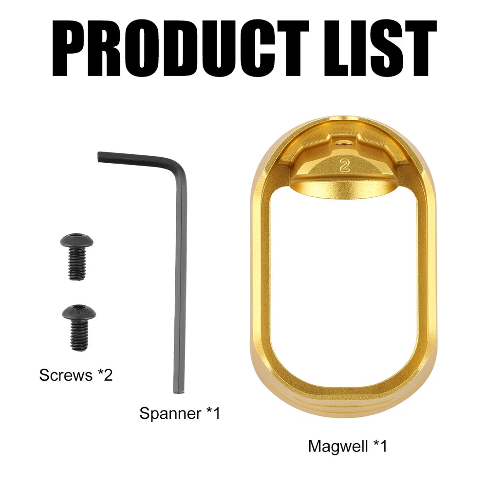Product Description Product Features: 1 This Magwell is made of high-quality all-aluminium alloy, CNC crafted, comfortable to touch, strong and durable 2 Magwell size perfectly fits the pistol, greatly improve the speed of changing magazines, shorten the time to change magazines 3 Adopting screws, it can be stably fixed on the pistol without worrying about falling off during use, suitable for long-term installation and carrying use. 4 Easy to install, without any modification can be quickly installed, retaining the original appearance of the gun 5 Lightweight design, does not add a lot of weight after installation, does not affect the shooting accuracy. 6 Adapt to Gen 5 Glock 19 (G19) And Glock 17 , improve the speed of magazine change and shooting experience. 7 2024 new appearance, better fit than the old design, with smooth and beautiful lines. Product Parameters: Material: aluminium alloy Product size: 62.7*38.5*20.1 MM Weight: 19 g Applicable pistol models: For Gen 5 Glock 19 And Glock 17 Packing list: Magwell x 1 Spanner x 1 Screws x 2 Payment Shipping Terms Returns Contact Us We accept PayPal only. If buyer want to delay the payment because of financial problem, please contact me by the ebay message within 3 days Payment via PayPal (PayPal accepts all major credits/debit cards and eCheque) ECheque payment will tak e 3-10 days to get clear, thus DELAYing the shipment. Handling time: 1 business day (Orders are not processed on weekends & holidays) Tracking information will be sent once item is shipped. Local pick-up is unavailable at the moment. For international shipping and shipping to Guam, Hawaii and Alaska, Please contact us before placing the order. Item is shipped to ebay address. Leaving correct address can minimize delay. For any issues with Defects, Return, Item Exchange request, please contact us first and send us a message first before opening any type of case or request. We devote ourselves making EVERY CUSTOMER in 100% Satisfactory and resolve any problem. We highly value and appreciate your business. Thank you. No returns will be accepted without an RMA number. Please contact us for the RMA number. Return is acceptable within 30 days of delivery. Return for replacement or money back is optional. Returned items must be in the brand new, unaltered and resalable condition. Seller is not responsible for any labor cost, expense in a dealer store, or damage due to wrong installation. Return is accepted within 14 days after the buyer's receiving the item. (Excluding contrived damagement or misusage).100% money-back Guaranteed! All product will be tested in 100% before delivery.If the item is defected by the processing of postage,Buyer has up to 14 days from date of receipt for exchange of a new one.All shipping charges for returned products are to be paid by the buyer,Please contact us for the return address All messages will be answered within 24 office hours. Please contact us either by clicking "contact seller" in the "purchase history" section or simply click "ask a question" at the bottom of this page. If you are unsatisfied with our item or service, please contact us before leaving any feedback. We are committed to resolve all issues in a friendly and satisfactory manner. We always reply to messages within 2 business days (off-duty at weekend). If you do not get a response from us, then please check your junk or spam mailbox. Payment We accept PayPal only. If buyer want to delay the payment because of financial problem, please contact me by the ebay message within 3 days Payment via PayPal (PayPal accepts all major credits/debit cards and eCheque) ECheque payment will tak e 3-10 days to get clear, thus DELAYing the shipment. Shipping Handling time: 1 business day (Orders are not processed on weekends & holidays) Tracking information will be sent once item is shipped. Local pick-up is unavailable at the moment. For international shipping and shipping to Guam, Hawaii and Alaska, Please contact us before placing the order. Item is shipped to ebay address. Leaving correct address can minimize delay. Terms For any issues with Defects, Return, Item Exchange request, please contact us first and send us a message first before opening any type of case or request. We devote ourselves making EVERY CUSTOMER in 100% Satisfactory and resolve any problem. We highly value and appreciate your business. Thank you. No returns will be accepted without an RMA number. Please contact us for the RMA number. Return is acceptable within 30 days of delivery. Return for replacement or money back is optional. Returned items must be in the brand new, unaltered and resalable condition. Seller is not responsible for any labor cost, expense in a dealer store, or damage due to wrong installation. Returns Return is accepted within 14 days after the buyer's receiving the item. (Excluding contrived damagement or misusage).100% money-back Guaranteed! All product will be tested in 100% before delivery.If the item is defected by the processing of postage,Buyer has up to 14 days from date of receipt for exchange of a new one.All shipping charges for returned products are to be paid by the buyer,Please contact us for the return address Contact Us All messages will be answered within 24 office hours. Please contact us either by clicking "contact seller" in the "purchase history" section or simply click "ask a question" at the bottom of this page. If you are unsatisfied with our item or service, please contact us before leaving any feedback. We are committed to resolve all issues in a friendly and satisfactory manner. We always reply to messages within 2 business days (off-duty at weekend). If you do not get a response from us, then please check your junk or spam mailbox. powered by