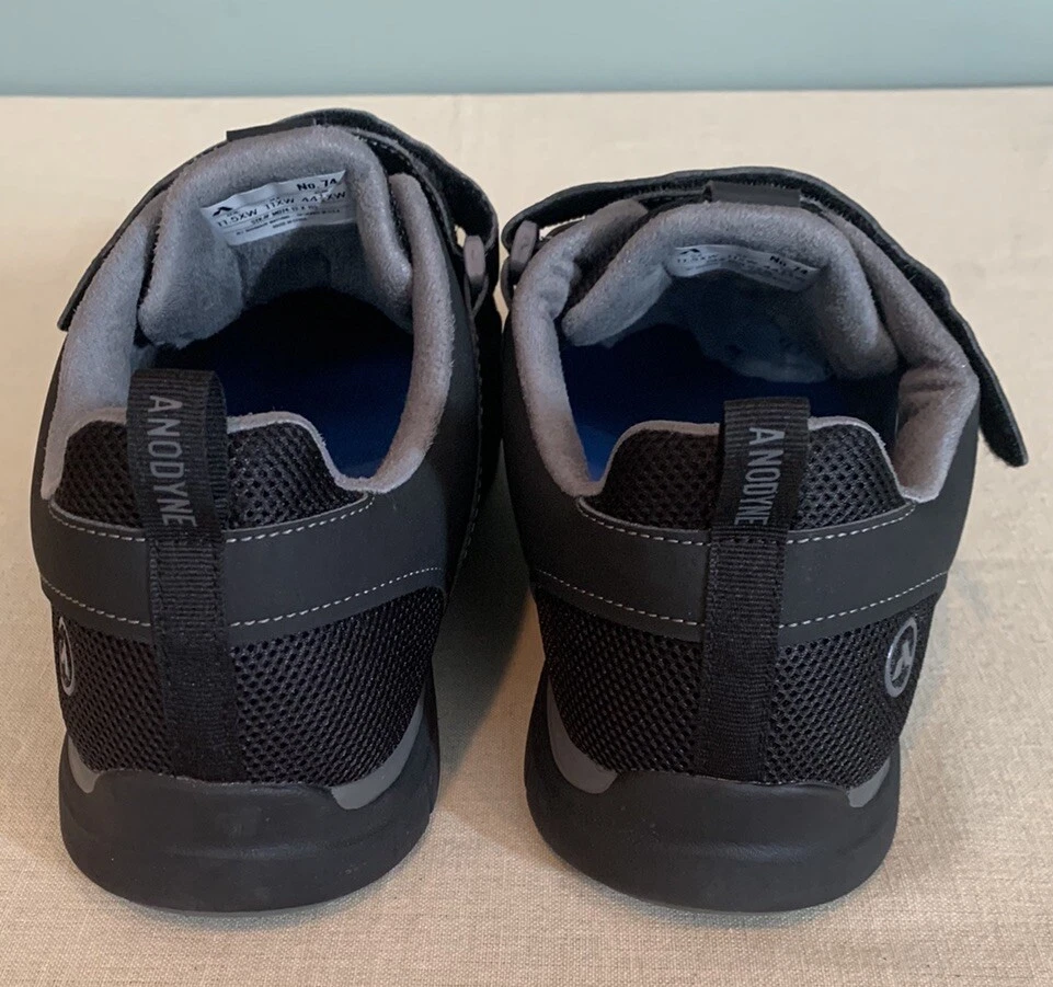 Season: Fall, Spring, Summer Country/Region of Manufacture: China Brand: Anodyne Accents: Logo Occasion: Casual, Travel, Workwear Closure: Hook & Loop Color: Black UK Shoe Size: 11 Department: Men Insole Material: Synthetic US Shoe Size: 11.5 Shoe Width: XW Style: Slip-On Type: Casual Features: Comfort, Adjustable Strap, Arch Support, Breathable, Lightweight, Lined, Orthopedic, Slip Resistant Upper Material: Synthetic Lining Material: Synthetic Model: Anodyne No. 74 Toe Shape: Almond Toe EU Shoe Size: 44.5 Fabric Type: Woven Outsole Material: Synthetic Pattern: Solid