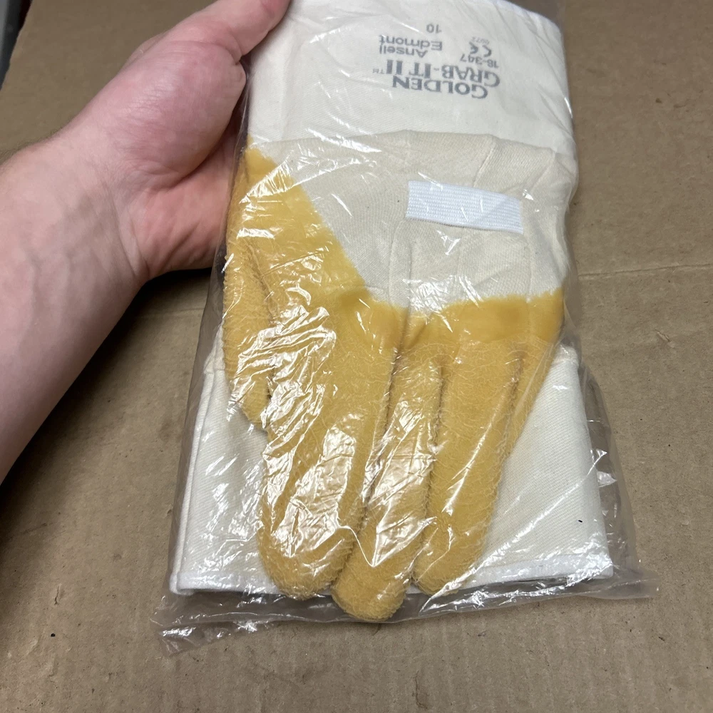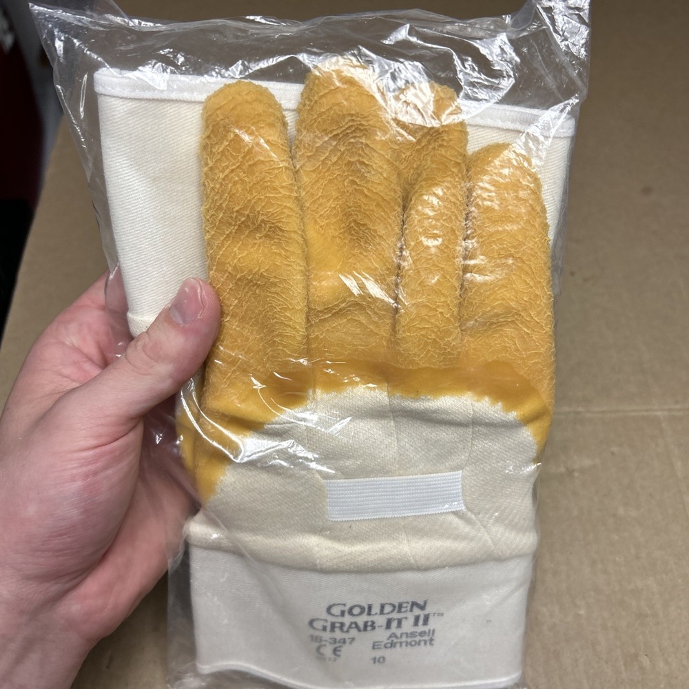 Ansell Golden Grab-It Gloves, size 10 Palm Coated - 1 Pair New In Package
