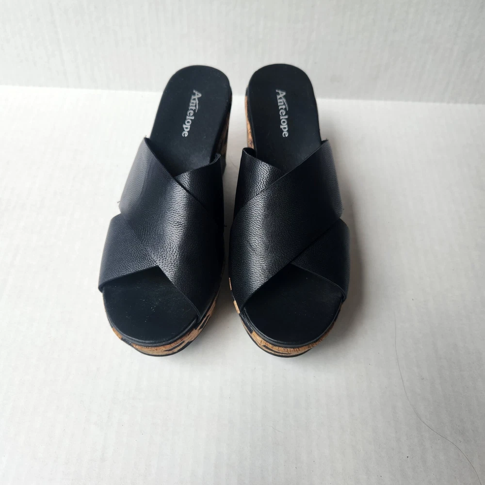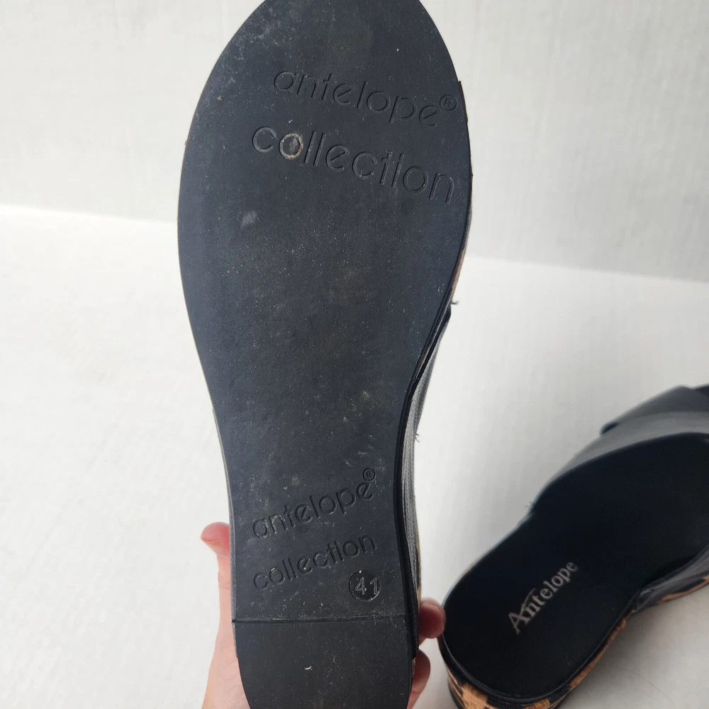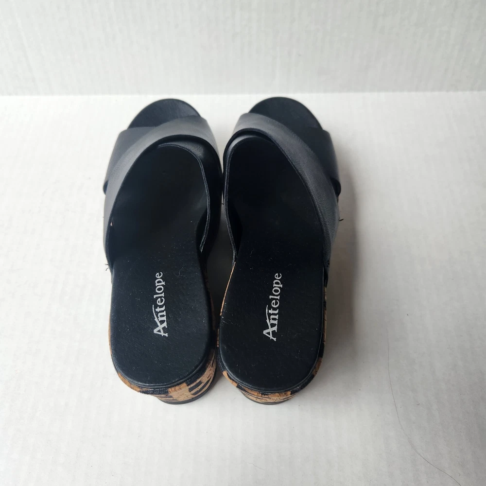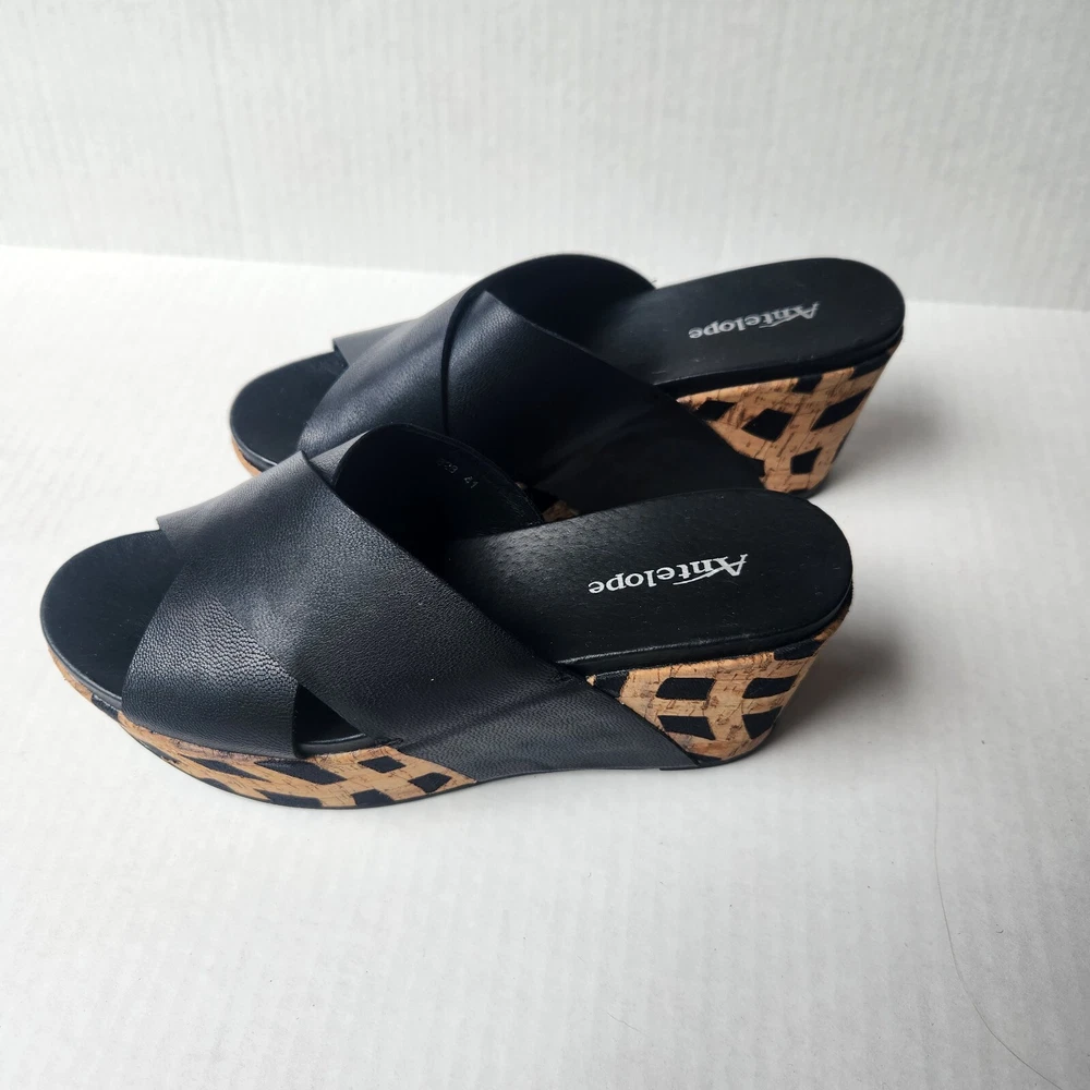 Women's Antelope 828 Cross Band Wedge Sandal Size: EU41 US9.5 Color: Black/Tan Leather/Cork Material Pre-owned item in excellent condition with little signs of wear. Item ships from smoke free home in 2 business days. Please feel free to reach out with any questions you may have, and thanks for taking a look!