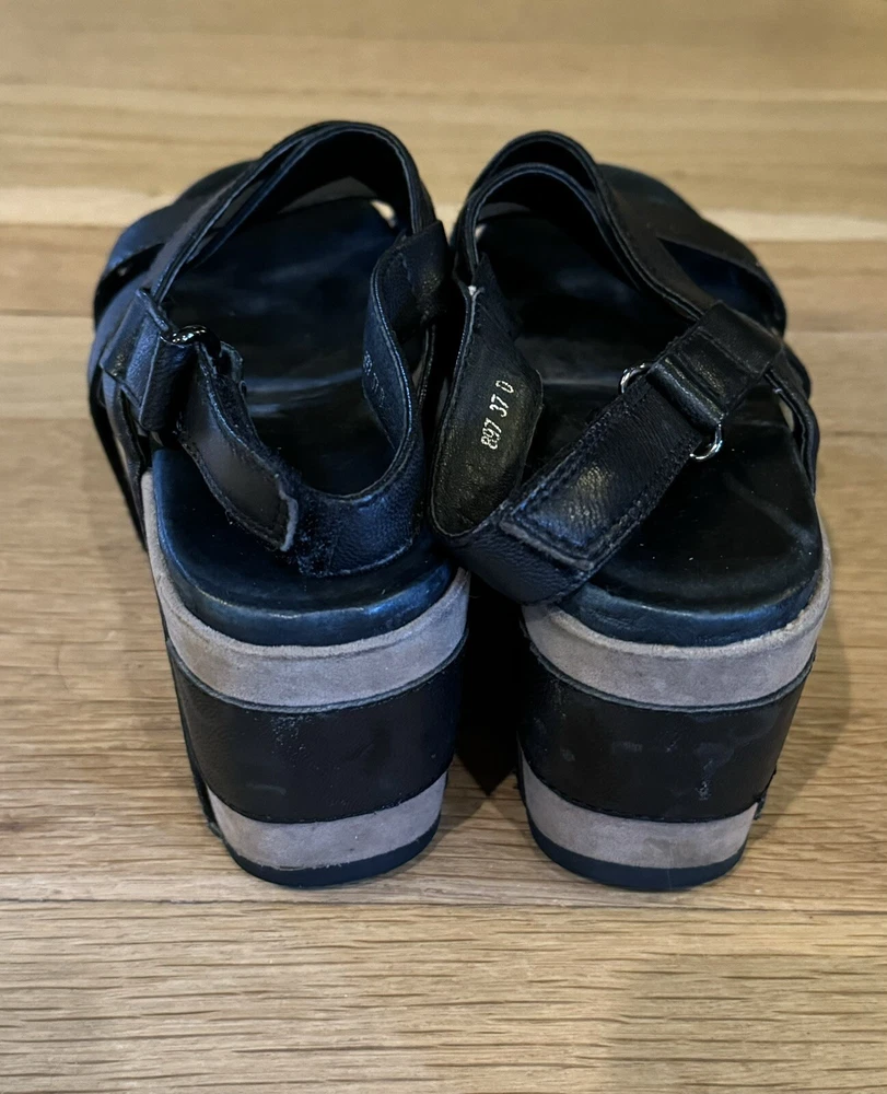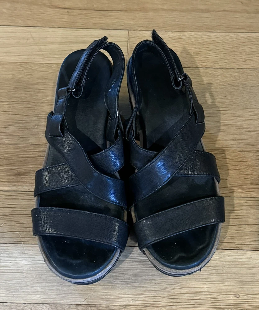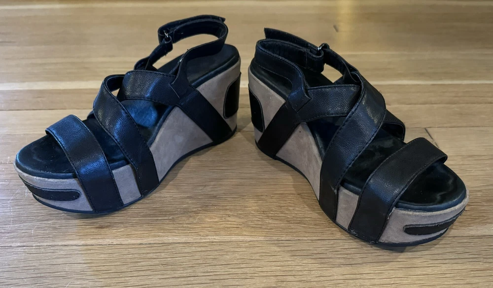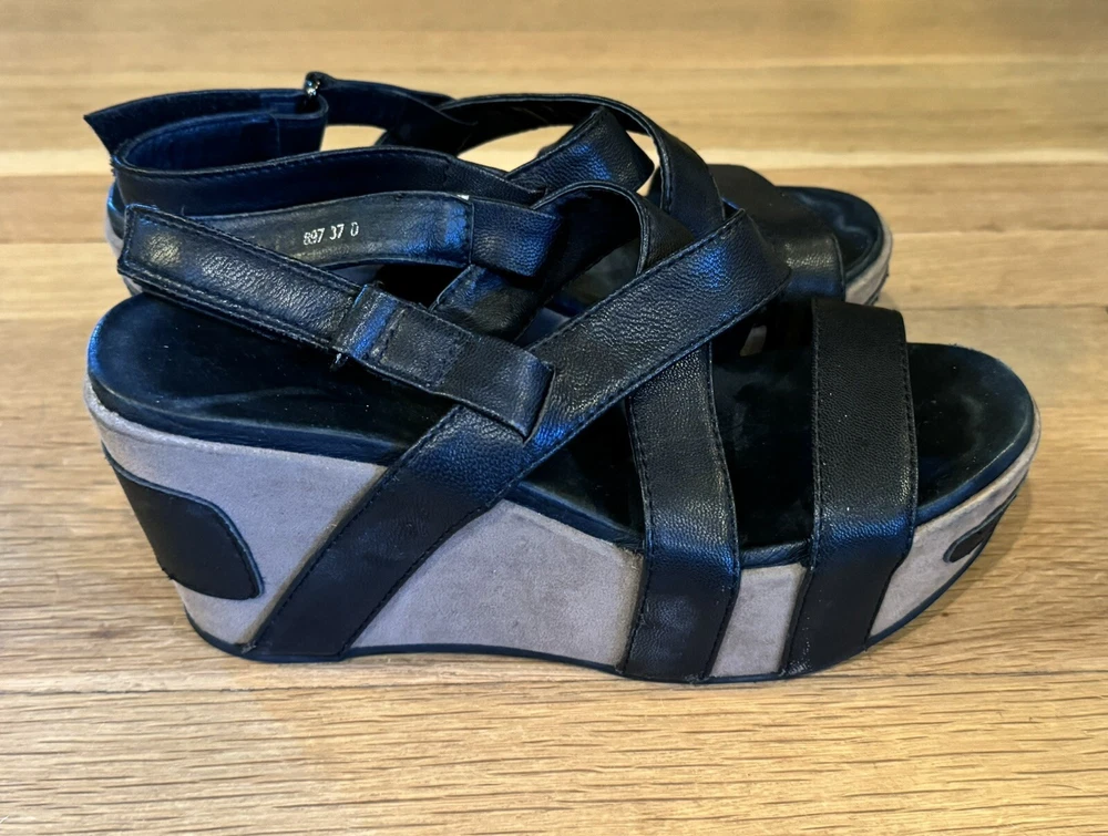 Antelope Collection Black Strappy Wedge Platform Sandal Shoes 37 6 6.5