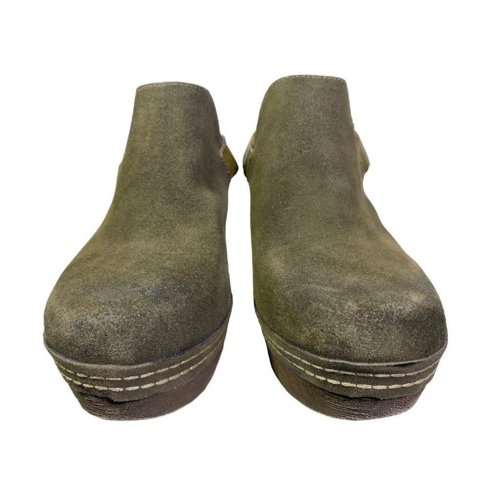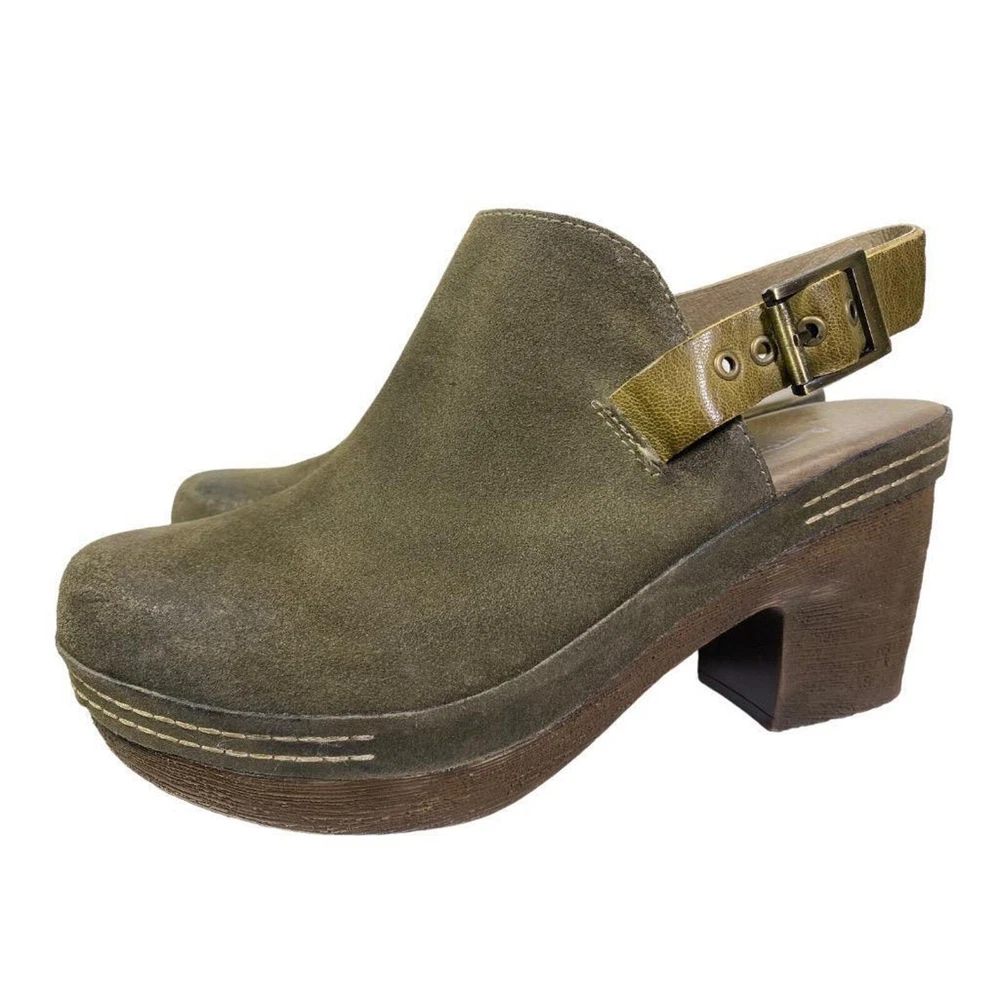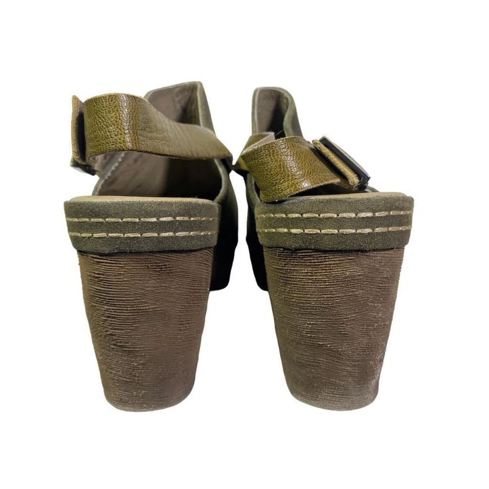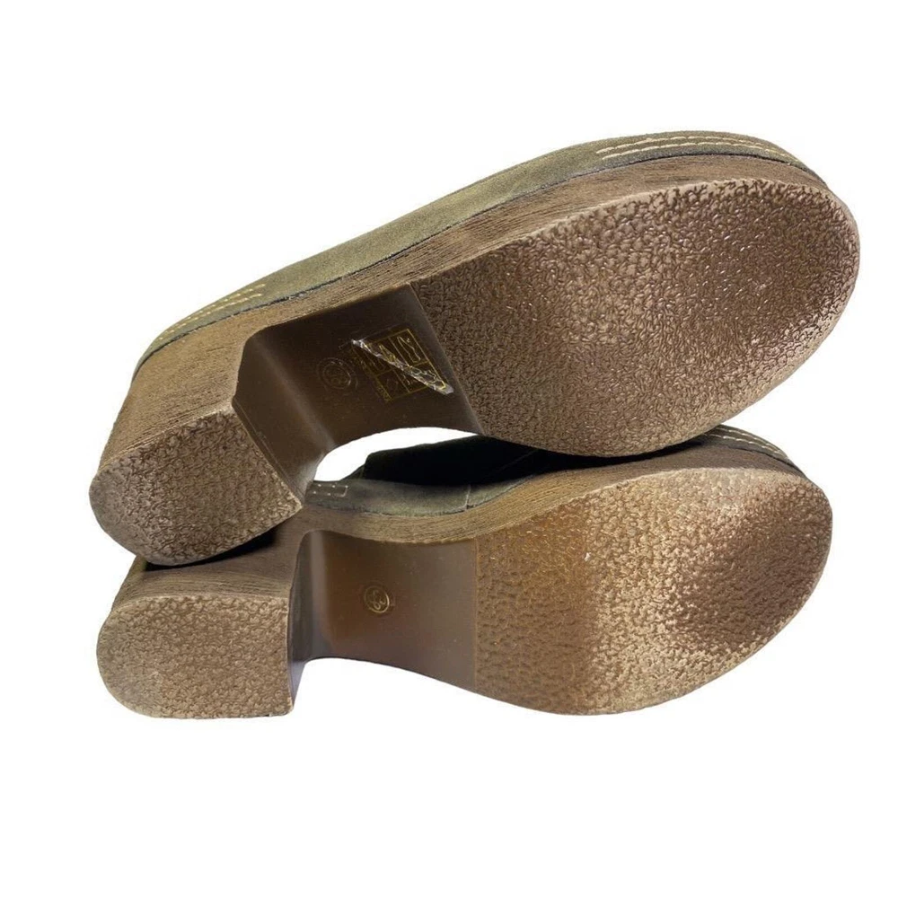 ANTELOPE STELLE PLATFORM SLINGBACK CLOG WOMEN SIZE 38 US 7 Click images to enlarge DESCRIPTION This shoe is in gently used condition. The lining has some blemishes. ~length of foot bed 9.5 inches width measures 3 inches across the foot bed ~Heel 3.25", platform 1.25" ~Suede upper