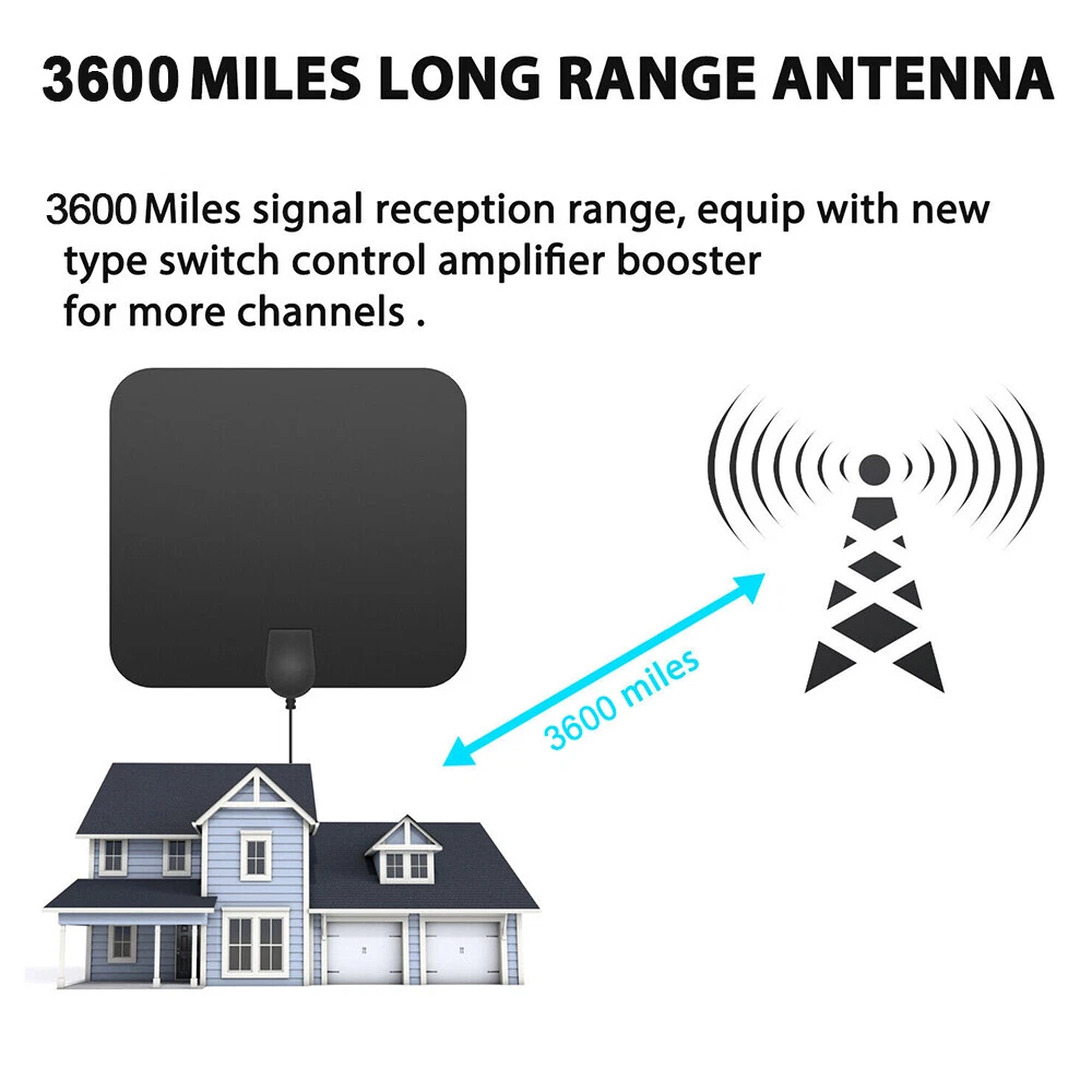 Newe st 4K Digital TV Antenna 3600 Miles Booster DVB-T Aerial HD Flat Indoor Active 37DBi High Gain VHF UHF TV Box TV Antenna Newest 4k 1080p HDTV Indoor Digital Amplified 3600Mile Signal Booster Specificati on : Flat antenna: 250X223mm Signal support: support 720p, 1080i, 1080p HD mode Product range: 3600 miles Coaxial cable: 16.5ft Connector type:F male to TV v.s.w.r. : < = 1.5 Maximum value: 1 Impedance : 75 Ω Capability: Multi-directional capability Applicable channels: All channels can be received Product gain: 37 DBI (with amplifier) Operating frequency: 174~240mhz, 470~862mhz Product size: 25*22.3 * 0.6cm Product Tape: Double-sided tape Antenna cover color: black Operating temperature: -45~85℃ Storage temperature: -45~85℃ Feat ure : 1. This unique plastic shell is imported throughout the network of silver fluffy, and all accessories are pure copper to ensure loose contact 2. We bundled the Velcro and two bubble machines to solve the problem of 3M stickers difficult to solve 3. Connect high quality coaxial cable, easy to locate the antenna, find the best TV signal reception 4. New generation flat design indoor TV antenna, thickness is only 0.6 inches 5. Specially compatible with various digital terrestrial (DVB-T, ISDB-T, DMB-T/H, ATSC) and DAB/FM radios for HDTV 6. Two signal modes, short range (0-300 miles) and long range (300-600 miles), choose the appropriate mode to find more channels Pac kage Includes: 1 × Antenna 1 × Signal Amplifier 1 × F To LEC Converter 1 × Instruction Manual