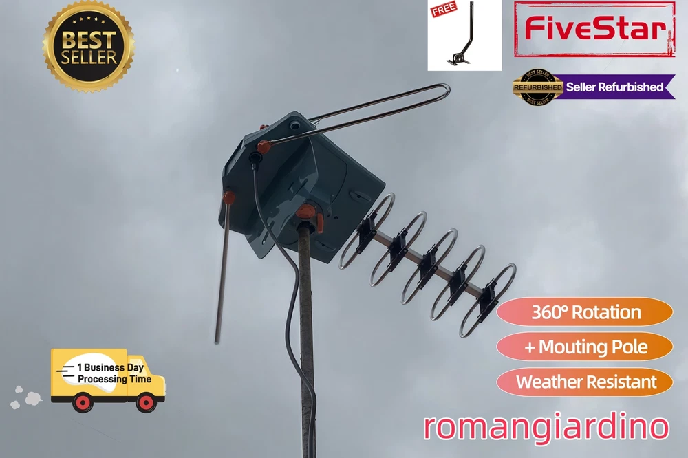 🔧 32 ~ 36dB 360° UV Dual-band Outdoor Antenna: The Perfect Choice This outdoor antenna is engineered for exceptional performance, crafted from high-quality materials with advanced technology. Its compact design makes it easy to integrate with your setup, while the sturdy and eco-friendly construction ensures durability. Whether you're sending or receiving signals, this antenna delivers strong connections and hassle-free operation. Don’t miss out on this ideal solution for your signal needs! 🌟 Key Features: Durable Construction: Made from high-quality, long-lasting materials. Portable Design: Lightweight, compact, and easy to carry. Gift-Ready: Comes in attractive gift box packaging. Perfect Fit: Designed to complement your device seamlessly. Convenient Setup: Includes an adaptor, excludes the pole. Reliable Performance: Easy to operate and install with great connectivity. 📊 Specifications: Frequency Range: VHF 40 ~ 300MHz, UHF 470 ~ 890MHz Noise Figure: ≤ 2.5dB Antenna Gain: VHF 28 ~ 32dB, UHF 32 ~ 36dB Reception Range: Up to 150 miles Channel Capacity: 1 ~ 69 Impedance: 75 ohm Max Output Level: 105dBμV Power Supply: AC 110V/60Hz Operating Temperature: -10°C ~ 50°C Coaxial Cable Length: 40ft (10m) Weight: 63.85oz (1810g) 📦 Package Includes: 1x HDTV Antenna with built-in rotor & amplifier 1x Rotor Control Box 1x Remote for Rotor Control Box 1x 40ft Coaxial Cable J-pole 🚫 Not Included: 4-way Splitter Make the smart choice today with this top-tier outdoor antenna!