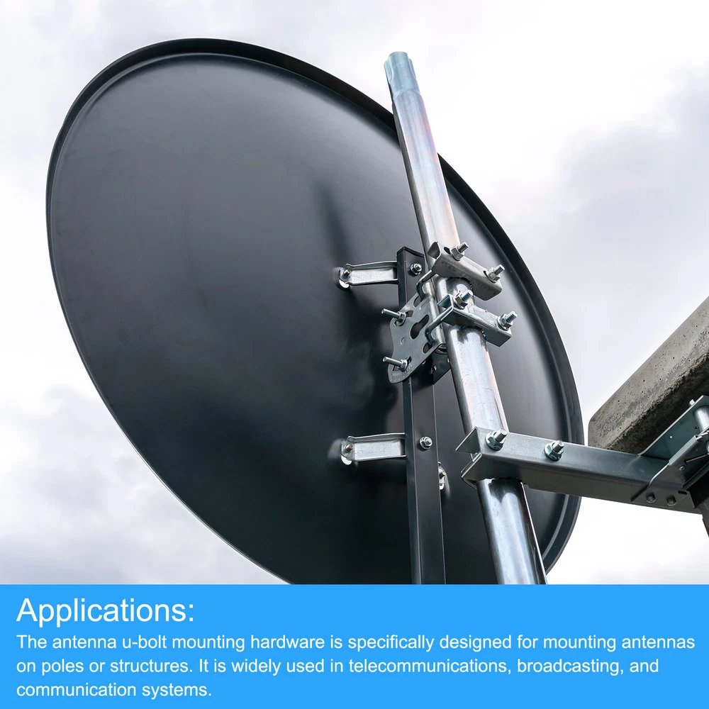 Document Description:1. Material: The antenna u-bolt mounting hardware is made of sturdy aluminum alloy. The galvanized surface treatment provides good corrosion resistance, protecting the brackets from rust and extending their lifespan.2. Design: The antenna pole bracket kit features a versatile U-shaped design that allows for secure attachment of antennas to poles or structures. The brackets are precisely engineered with pre-drilled holes and a U-bolt that ensures a tight and stable fit, providing optimal support and stability for the antenna installation.3. Applications: The antenna pole mount bracket is specifically designed for mounting antennas on poles or structures. It is widely used in telecommunications, broadcasting, and communication systems. The brackets provide a reliable and sturdy solution for securely attaching antennas, ensuring optimal signal reception and transmission.Specification:Material: Aluminum AlloyFinish: Zinc PlatedInner Width: 52mm / 2.05"Total Height: 86mm / 3.39"Thread Size: M8 x 50mm / M8 x 1.97"(D*L)Bracket Fit Pipe Width: 23mm / 0.91"Bracket Size: 80 x 60 x 22mm / 3.15" x 2.36" x 0.87"(L*W*H)Package Content: 2pcs x U-bolt, 1pcs x Bracket, 4pcs x Flat Washers, 4pcs x Lock Washers, 4pcs x Nuts Antenna Mounting Pole Clamp Bracket Pole Holder with Double U-bolt Clamp Description: 1. Material: The antenna u-bolt mounting hardware is made of sturdy aluminum alloy. The galvanized surface treatment provides good corrosion resistance, protecting the brackets from rust and extending their lifespan. 2. Design: The antenna pole bracket kit features a versatile U-shaped design that allows for secure attachment of antennas to poles or structures. The brackets are precisely engineered with pre-drilled holes and a U-bolt that ensures a tight and stable fit, providing optimal support and stability for the antenna installation. 3. Applications: The antenna pole mount bracket is specifically designed for mounting antennas on poles or structures. It is widely used in telecommunications, broadcasting, and communication systems. The brackets provide a reliable and sturdy solution for securely attaching antennas, ensuring optimal signal reception and transmission. Specification: Material: Aluminum Alloy Finish: Zinc Plated Inner Width: 52mm / 2.05" Total Height: 86mm / 3.39" Thread Size: M8 x 50mm / M8 x 1.97"(D*L) Bracket Fit Pipe Width: 23mm / 0.91" Bracket Size: 80 x 60 x 22mm / 3.15" x 2.36" x 0.87"(L*W*H) Package Content: 2pcs x U-bolt, 1pcs x Bracket, 4pcs x Flat Washers, 4pcs x Lock Washers, 4pcs x Nuts Hot Item Payment 1.We accept eBay payment . 2.Payment must be received within 7 business days of auction closing. Shipping 1.We ship to your eBay or Paypal address. Please make sure your eBay and Paypal address is correct before you pay. 2.Items will be shipped within 1-3 business day when we received payment. 3.Delivery time depends on destination and other factors. Description Policy Antenna Mounting Pole Clamp Bracket Pole Holder with Double U-bolt Clamp Description: 1. Material: The antenna u-bolt mounting hardware is made of sturdy aluminum alloy. The galvanized surface treatment provides good corrosion resistance, protecting the brackets from rust and extending their lifespan. 2. Design: The antenna pole bracket kit features a versatile U-shaped design that allows for secure attachment of antennas to poles or structures. The brackets are precisely engineered with pre-drilled holes and a U-bolt that ensures a tight and stable fit, providing optimal support and stability for the antenna installation. 3. Applications: The antenna pole mount bracket is specifically designed for mounting antennas on poles or structures. It is widely used in telecommunications, broadcasting, and communication systems. The brackets provide a reliable and sturdy solution for securely attaching antennas, ensuring optimal signal reception and transmission. Specification: Material: Aluminum Alloy Finish: Zinc Plated Inner Width: 52mm / 2.05" Total Height: 86mm / 3.39" Thread Size: M8 x 50mm / M8 x 1.97"(D*L) Bracket Fit Pipe Width: 23mm / 0.91" Bracket Size: 80 x 60 x 22mm / 3.15" x 2.36" x 0.87"(L*W*H) Package Content: 2pcs x U-bolt, 1pcs x Bracket, 4pcs x Flat Washers, 4pcs x Lock Washers, 4pcs x Nuts Hot Item Payment 1.We accept eBay payment . 2.Payment must be received within 7 business days of auction closing. Shipping 1.We ship to your eBay or Paypal address. Please make sure your eBay and Paypal address is correct before you pay. 2.Items will be shipped within 1-3 business day when we received payment. 3.Delivery time depends on destination and other factors.