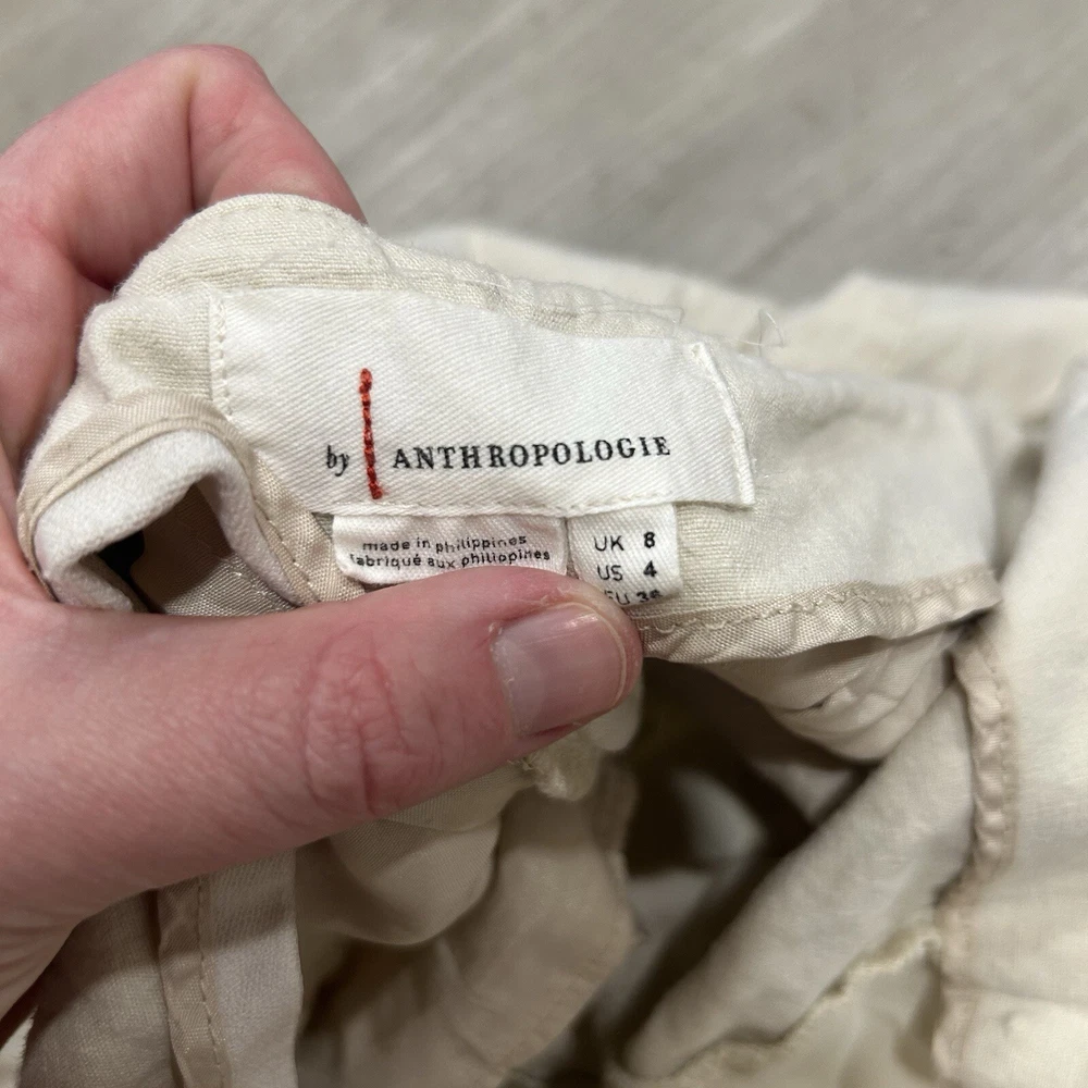 Anthropologie Linen Blend Ivory Cropped Wide Leg Side Button Pants Size 4 Small. Condition is Pre-owned. Shipped with USPS Ground Advantage.