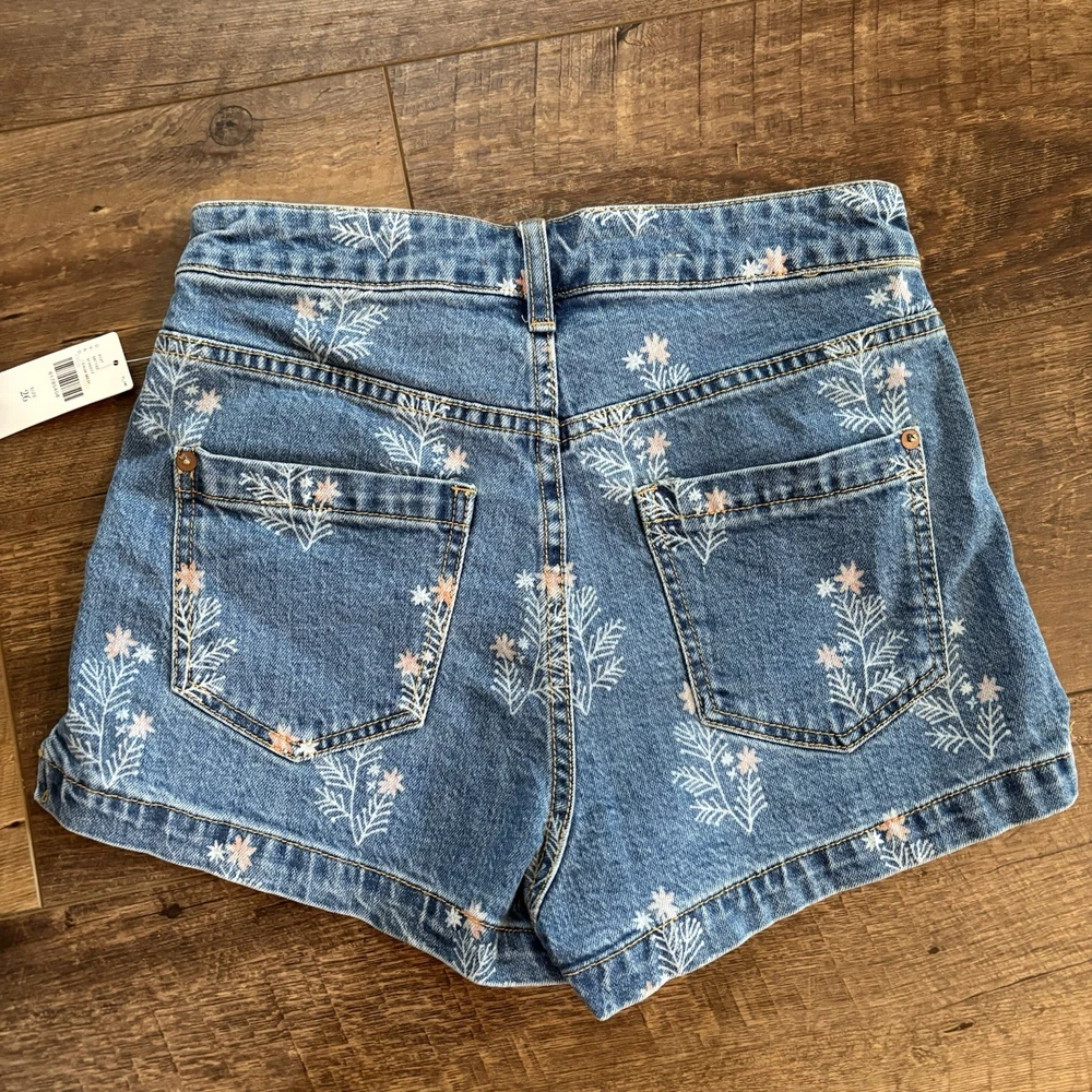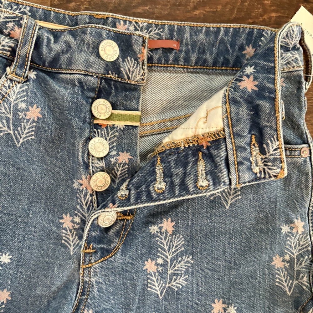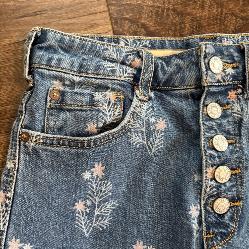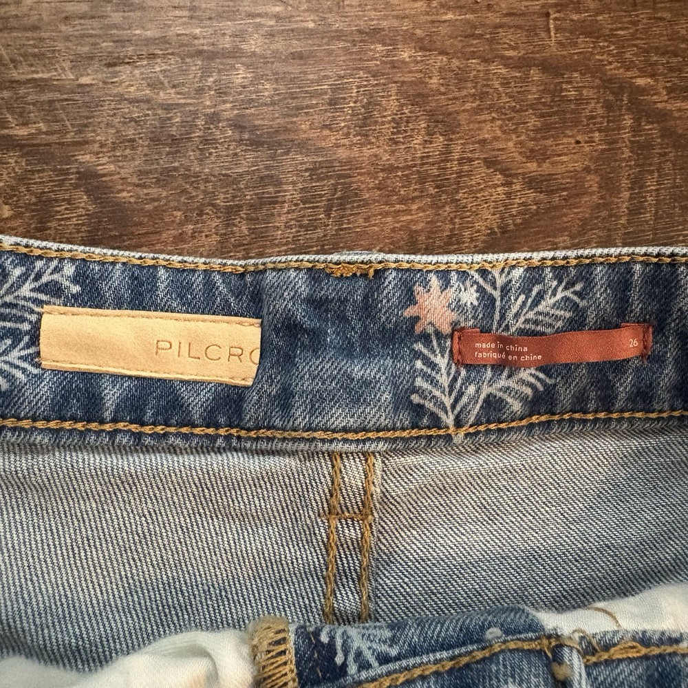 The Anthropologie PILCRO and the Letterpress Women’s Floral Denim Jean High Rise Shorts in size 26 are a stylish and versatile addition to any wardrobe. These pink and white button fly shorts feature a high rise waist, 5-pocket design, and are made from a comfortable cotton blend denim fabric. Perfect for casual occasions during the summer and spring seasons, these shorts also have a colorful floral pattern that adds a touch of personality to your look. Whether you're heading to the beach or just out for a casual day, these Pilcro shorts are sure to make a statement.