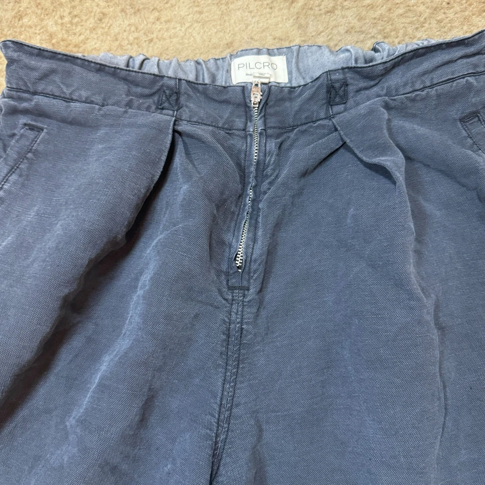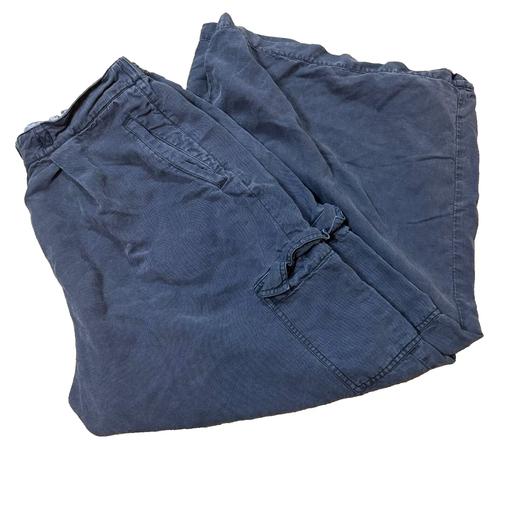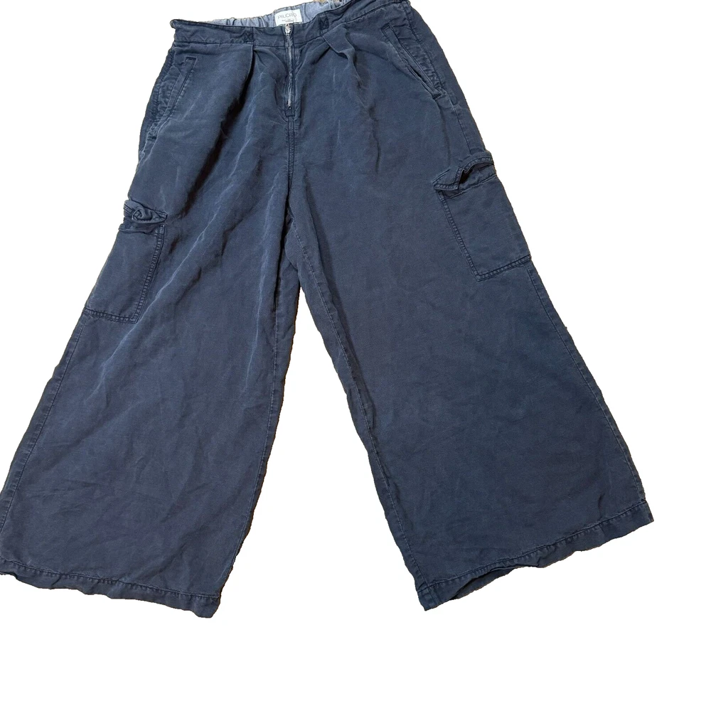 Type: Pants Pattern: Solid Waist Size: 31 in Material: Linen Brand: Pilcro Department: Women Size Type: Regular Inseam: 26.5 in Color: Blue Fabric Type: Canvas Front Type: Flat Front Leg Style: Wide-Leg Style: Cargo Size: 31 Vintage: No Fit: Relaxed Closure: Zip Features: Pockets Occasion: Casual