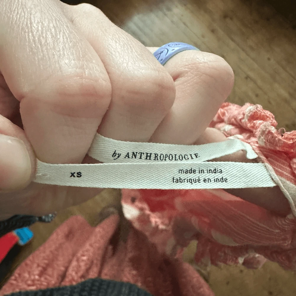 Anthropologie wide leg, pink striped, lightweight, small ruffled, tie neck, button front, sleeveless jumpsuit. In good condition. Approximately 18 inches from armpit to armpit, 17 inches across the waist, 15.5 inch inseam, 21 inch inseam. In good, gently used condition. From a pet and smoke free house.