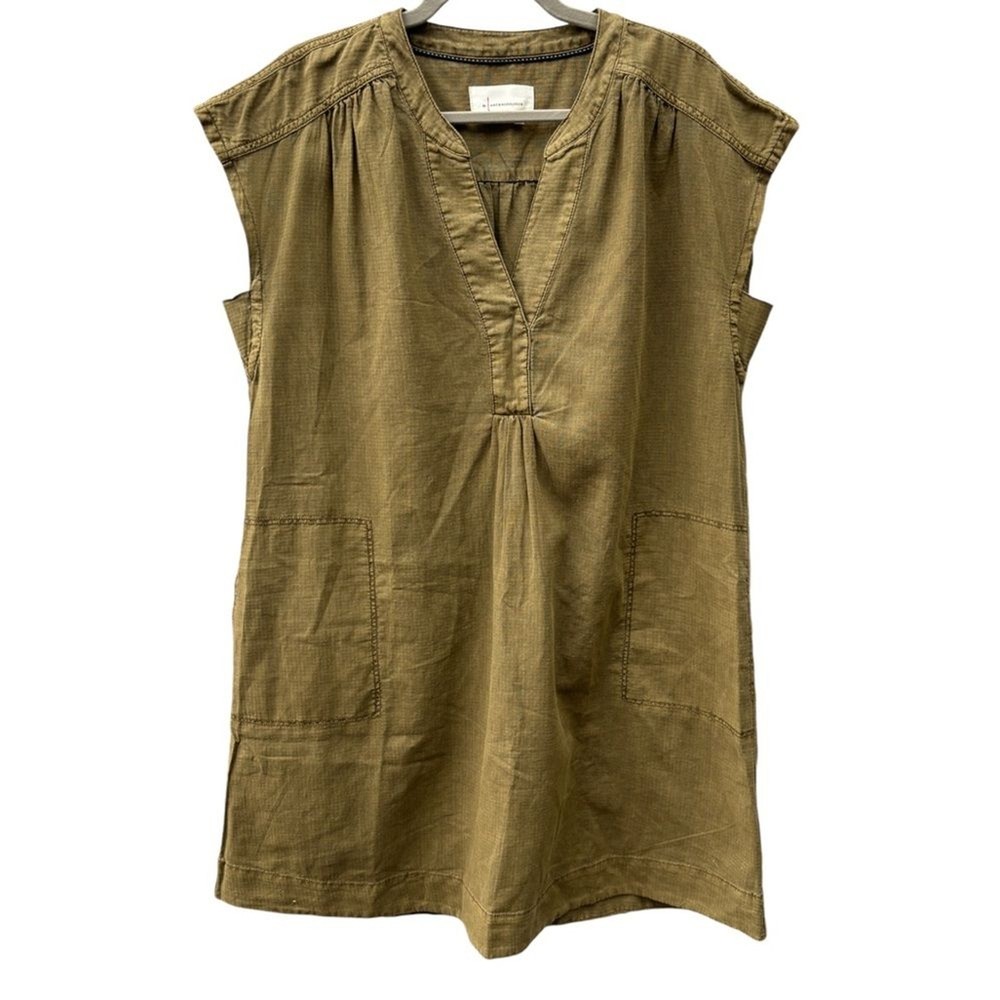 Anthropologie “Kimber” Mini Dress Shift Dress Tunic Dress Army Green Color Side Pockets Cap Sleeves Boxy Oversized Linen Blend 55% Linen, 45% Cotton Machine Wash Wear Loose or Belt It! A Closet Staple! Dress Up with Over the Knee Boots and a Blazer Dress Down with Leggings and Sneakers Super Cute Women’s Size M (Oversized - See Measurements) Approximate Measurements: Chest Flat Lay: 23” Total Length: 36” Excellent Condition Bin H