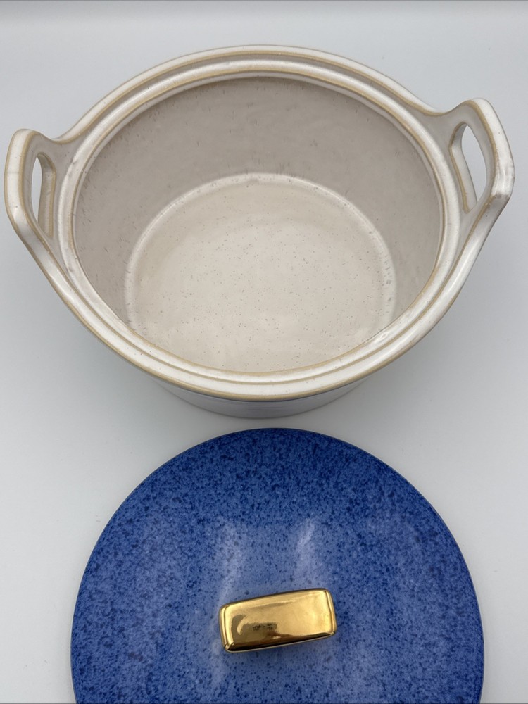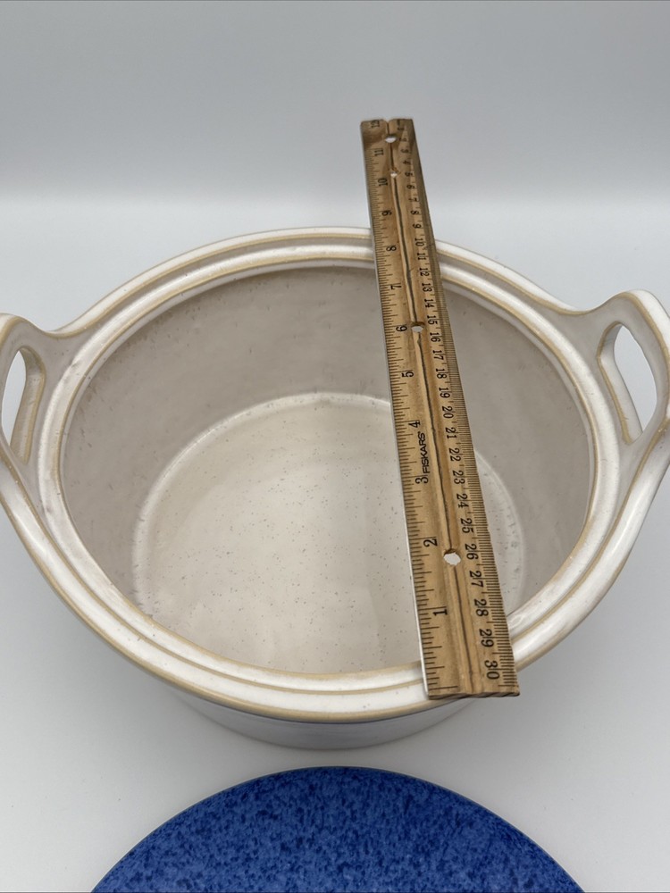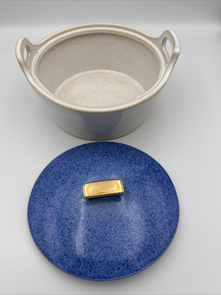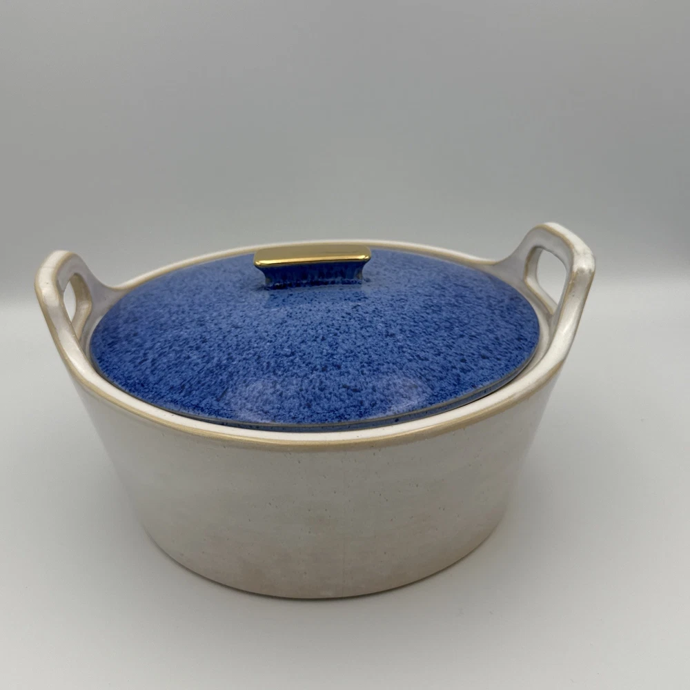 Crafted for the culinary enthusiast, this round pot with a matching blue lid is a versatile addition to any kitchen. Its ceramic surface ensures even heat distribution and easy maintenance, while the lid traps warmth and aromas during cooking. Suitable for both electric and gas stovetops, this piece is a testament to Anthropologie's commitment to quality and style. This Dutch Oven is an original, boasting a round shape that complements its functional design. The set includes the ceramic pot and lid, both adorned with the distinctive blue hue that lends an elegant touch to your cookware collection. Whether you're simmering soups or braising meats, this pot is sure to become a cherished staple in your culinary repertoire.