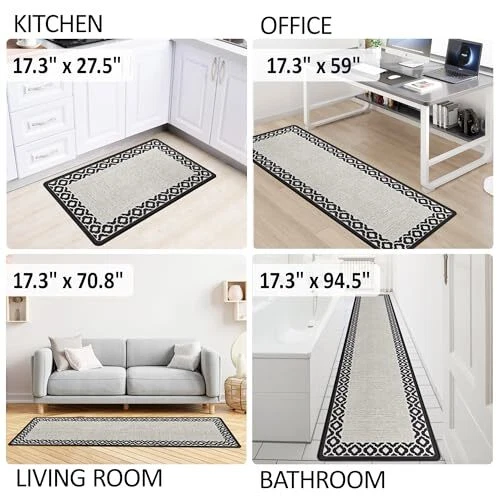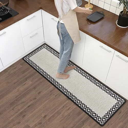 Return Policy Fast Delivery Trusted seller Anti Fatigue Kitchen Rug Non Slip Kitchen Mats for Floor Kitchen Runner Cushioned Kitchen Rug Ergonomic Comfort Standing Mat for Kitchen Floor Office Sink Laundry Kitchen Decor 17.3×59inch Product Description Anti Fatigue Kitchen Mats: kitchen mats for floor enhance comfort while standing. Reduces pressure on knees and ankles. Relieves back and spine pain when standing. This farmhouse kitchen rugs washable looks very nice and adds an elegant touch in your home. Superior Cushioning: This kitchen runner are made of premium PVC foam; Soft cushioning combined with strong rebound helps keep you supported and energized. Also the cushioned rug protctect the floor from the dropping sharp tableware or fragile bowls. Widely Used Kitchen Mat: The comfort kitchen mat widely used for home decor. It is great choices as kitchen sink rug, kitchen rug, laundry room rug. Kitchen carpet also can be used as a great gift for your families in Christmas, Thanksgiving, Halloween. Easy to Clean: The anti fatigue kitchen mats are easily cleaned when water, stains, or oil splashes on the kitchen mat. Simply wipe off the dirt with a damp cloth or hand-held vacuum as needed, and the memory foam kitchen mat will remain looking new. rubber kitchen mats for floor: Open padded kitchen floor mats fully and place on even and flat floor, the standing pad will be back to normal in a few days. When using, the cushioned rugs must be placed on the flat and dry floor to prevent moving around. Shipping Returns Payment Shipping Shipping is FREE to all addresses other than APO/PO boxes in the lower 48 states. All our stock ships from US-based warehouses. Shipped via USPS or UPS (depending on location and package weight) Unless stated otherwise, all orders will ship within 24-72 hours of your payment being processed. Check our feedback to see the great reviews of FAST shipping we offer. Returns Seller does not accept returns Payment We currently accept payment via eBay managed payments only. Once payment is cleared, we will dispatch your shipment within 1-3 business days. Please refer to the "Shipping" tab for more information regarding shipping speed to your destination.