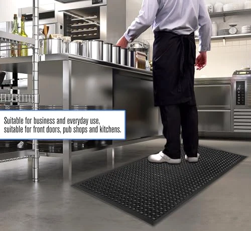 Return Policy Fast Delivery Trusted seller Anti Fatigue Mat, 36"x60" Rubber Floor Mat, Non-Slip Rubber Floor Mat Heavy Duty Mats for Outdoor Restaurant Kitchen Bar (Black) Product Description 【Non-slip Drainage Mat】Anti-slip drainage mat design – engineered with large hexagonal holes, this rubber drainage mat effectively captures and drains liquids, preventing dangerous puddles from forming. This makes it ideal for use as a commercial kitchen mat w grease and water can cause hazardous slipping. Its anti-slip surface keeps the mat securely in place, ensuring safety in bustling environments. 【Drains and Dries out Outside Mat】 Designed for tough conditions, this mat excels as a bar mat for floor or as an outdoor drainage mat for patios, decks, or entrances. Its large drainage holes promote rapid drying, preventing standing water from causing damage or slippery surfaces. 【Multi-Functional 】The rubber floor mat perfect for both indoor and outdoor settings such as shops, restaurants, patios, boats, bars, and homes. This 36"x60" heavy-duty mat offers comfort and protection, while being easy to clean and ideal for high-traffic areas. 【Heavy Duty Rubber Floor Mat】Made of high-grade rubber, this drainage mat provides superior durability and long lasting performance. Weighing 14.3 LB, Size: 60 x 36 x 0.4 in. 【Easy to Clean】Wipe or hose clean with soap and water. This mat is sustainable, durable, and resistant to water. Its easy to clean surface ensures that dirt, grease, and liquids can be quickly washed away. Shipping Returns Payment Shipping Shipping is FREE to all addresses other than APO/PO boxes in the lower 48 states. All our stock ships from US-based warehouses. Shipped via USPS or UPS (depending on location and package weight) Unless stated otherwise, all orders will ship within 24-72 hours of your payment being processed. Check our feedback to see the great reviews of FAST shipping we offer. Returns Seller does not accept returns Payment We currently accept payment via eBay managed payments only. Once payment is cleared, we will dispatch your shipment within 1-3 business days. Please refer to the "Shipping" tab for more information regarding shipping speed to your destination.