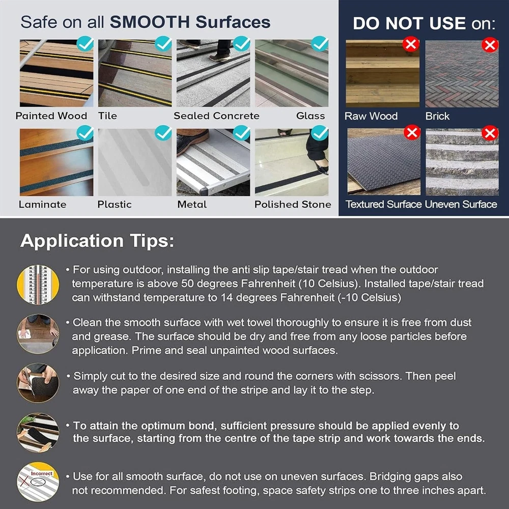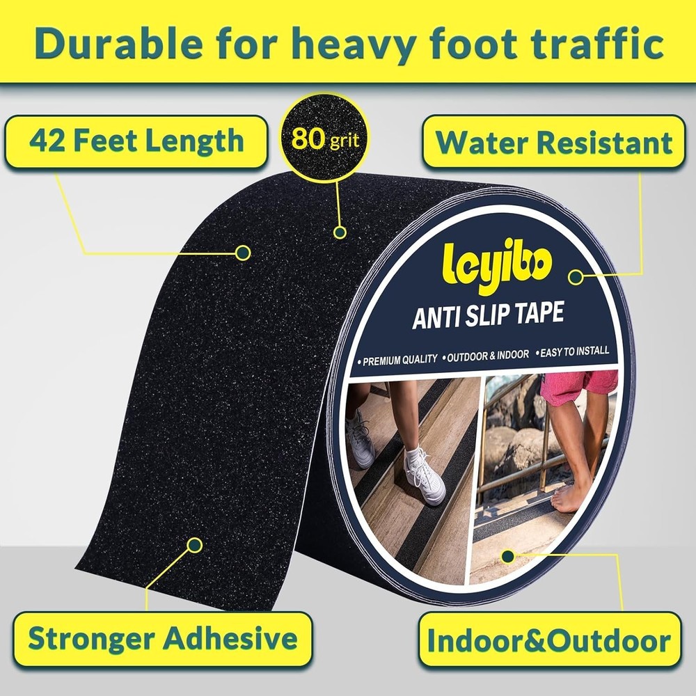 eBay Anti Slip Tape 4 Inch x 42 Ft Waterproof Non Skid Grip Roll for Stairs Steps Description Unit Count 42.0 Feet Number of Items 1 Size Name 4" x 42' Color Black Water Resistance Level Waterproof Material PET Base and Silicon Carbide Material Type PET Base and Silicon Carbide Item Weight 100 Grams Compatible Material Plastic Recommended Uses For Product Indoor, Outdoor Surface Recommendation Concrete Other Special Features of the Product Waterproof Size 4" x 42' Extra Length with 42 feet – Our Anti Slip Tape measures 4 in by 42 ft. With this extra length, you could cover more stair treads or any other surface that needs foot traction, providing you and your family with more safety and security you need on slippery surface. Simply cut the non slip tape to your desired size, peel off the protective film, and apply it to a clean surface. Finally, press the tape to ensure enough contact with the surface. That's so easy! Durable Weatherproof Adhesive - Our grip tape is designed with a highly durable water resistant strong adhesive layer to make sure your tape does not peel off after a few days of use. Our non slip tape for stairs was specifically designed to withstand heavy foot traffic and any weather conditions, including rain, snow, frost, sun, water, and heat. Anti skid tape creates an exceptional long term grip on all smooth surfaces for many years. Prevents Slipping with Perfect Texture - Anti slip tape help you take matters into your own hands when it comes to you and your family's safety. Non skid tape uses a 80 grit aluminum oxide traction pad which boosts foot traction with a subtle texture, giving you and your loved ones the most all-around protection without sacrificing comfort. Reduce the risk of falls, trips and slips for your loved ones, especially the elder, children and pets. Works on Multiple Surfaces - Exceptionally strong grip tape is durable for indoor and outdoor uses as well as stairs, entryways, ladders, concrete, metal, plastic, tile, laminate, mats, shoe grips, skateboard grip, ramp and scooters... Our tape can be used on all smooth surfaces. Enjoy all around protection and ultimate comfort in your home, as well as in hotels, restaurants, businesses and educational establishments. Easy to Use with Our Customer Support -Has become one of the most professional manufacturers by only making high traction anti slip tape which has been tested by the market for many years. Designed in the USA and produced according to the highest quality standards. Your new favorite anti slip tape is just a few clicks away! If you have any problems, contact us. We will solve it for you ABOUT US We offer the best prices around on high quality products. Our E-store includes media such as books, movies, music and games while offering electronics, toys, sporting apparel, clothing, tools, general home, garden items and more. SHIPPING We are always working hard to ensure your package arrives as soon as possible. Please understand that some factors like weather, high postal traffic, and the performance of shipping companies are outside of our control. We offer free shipping to the lower 48 states and ship within 2 business days of payment, usually sooner. We do not accept P.O. Boxes. Please provide a physical address. For shipping outside of the continental USA, we only use eBay's Global Shipping Program.The item is shipped to KY and then sent to the rest of the world. International customers are responsible for all duties and taxes. Continue to check out in order to calculate costs for shipping the item to your country. Messages regarding eBay's Global Shipping Program MUST be directed at eBay EXCLUSIVELY. RETURNS We offer a 30-Day Return Policy on items which you are not completely satisfied with. You have the option for a full-refund or an exchange of the item. No returns are available on items shipped outside of the USA. PAYMENT We accept PayPal. CONTACT US This page content is yet to come Please ad us to your favorite seller and visit again later Thank You CUSTOMER SATISFACTION We try our very best to make sure every customer is completely satisfied. If there's a problem, message us! We're happy to help.