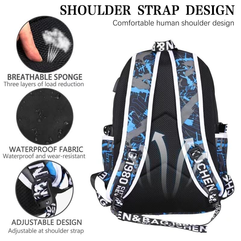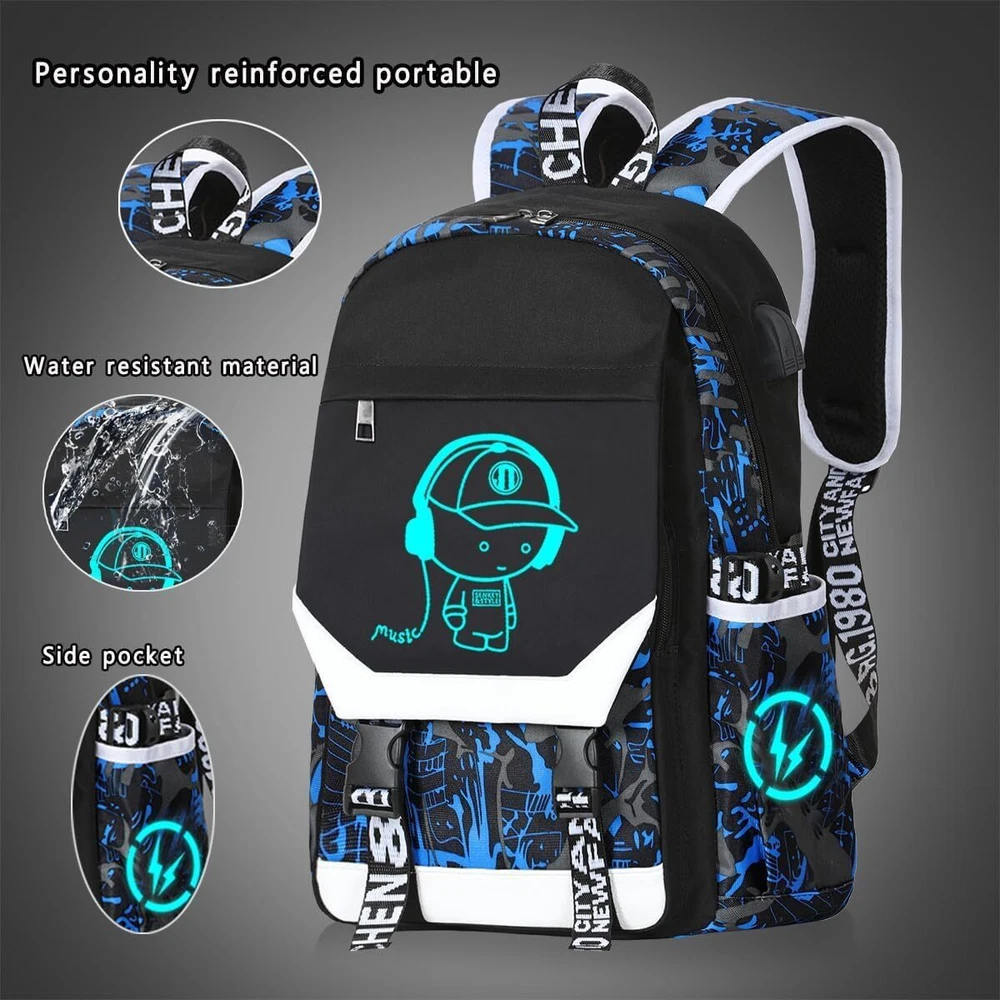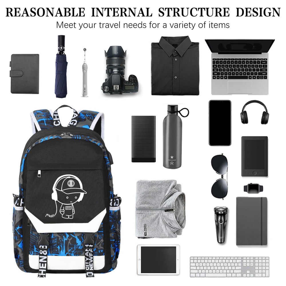 Description " We always pay attention to your use experience, and designed this simple and exquisite laptop backpack to help you store your items, and at the same time bring you a comfortable use experience. Product Name: travel on anti theft backpack Material: waterproof Oxford cloth Color: Black Size: 31*17*48cm Style: fashion, casual, simple Product selling point: 1. There are two compartments inside the large backpack, which can easily store computers and daily items, so that your items are organized and no longer messy. 2. The creative pattern design makes full of personality and more beautiful, making you more unique among the crowd. 3. The shoulder straps and bottom of the computer backpack are reinforced, so you don't have to worry about the backpack breaking during use. 4. The anti theft backpack is very suitable for work, travel, camping, making your travel easier. " MADE OF WATERPROOF OXFORD FABRIC:The travel bag is made of high-density Oxford cloth material, which makes the laptop backpack excellent waterproof and wear-resistant, and has a longer service life. The smooth two-way zipper design makes the backpack more beautiful and makes your use more convenient. LARGE-CAPACITY STORAGE SPACE:There are multiple compartments inside the luminous backpack for , which can classify and store various items. You can even store a 16-inch laptop in the hiking backpack. combination lock to make your use more secure and at ease. USB CHARGING&NIGHT LIGHT FUNCTION:The side of the cute backpack has a USB charging port and a headphone jack, which can be easily charged while walking, completely freeing your hands. The creative cartoon music character design can emit light at night, which makes the travel backpack for full of high-end and more unique. WIDE RANGE OF APPLICATION OCCASIONS:anime backpack.The large-capacity design of the mesh backpack has multiple compartments inside, which can store a 16-inch laptop, making your items more tidy. The laptop backpack for can be widely used in , outing, hiking, camping, party, going to work and other occasions, showing your unique life taste. OUR SERVICE GURANTEE FOR YOU:Everything I do is based on customer satisfaction. If you are not completely satisfied with the purchased product or the product is damaged or broken in transit, please contact us in time. We will solve your problem as quickly as possible!