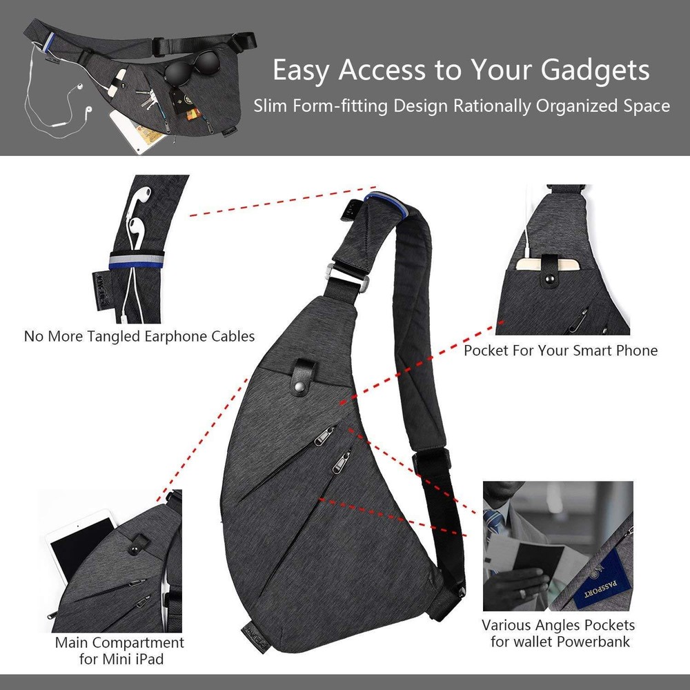 ❤JOYELIFE VERSATILE COMPACT SMALL SLING BAG CROSSBODY — Multipurpose casual daypack small anti theft sling bag for perfectly works as cross body, shoulder bag, casual daypack, chest bag, working business bag, anti theft travel bag, satchel bag, outdoor sports bag ( hiking, camping, climbing, cycling, walking, etc) in casual daily life or personal antitheft bag while traveling for men women. ❤ SMALL SAFE AND EASY CARRY ON SLING BACKPACK CROSS BODY BAG — 1).Sling bag exterior dimensions:14 x 8.5 x 1 inch(L*W*H/TH) 2).Adjustable strap (36 to 50inch), fits up to a slender 5'9" adult. Carry on Right shoulder, sling bag on your Left front, easy access for both hands. 3).Branded quality SBS zippers and comfortable polyester fabric, precise stitching makes it durable ❤ MULTIPLE STORAGE PURPOSE MEN SHOULDER SLING BAG — 1*Main zipper pocket (fits up to a 7.9 inch iPad mini), 1* magnetic snap phone pocket, 2* front zipper pockets, 1*small inner zipper pocket (RFID Blocking, protect your credit cards, ID card and personal information against identity theft, may block phone signal&keyless fob) ❤ A MUST HAVE SLING BAG FOR WOMEN & MEN — Multiple pockets at various angles, easy access to all your gadgets (such as smart phone, wireless earbuds, sunglasses, passport holder, wallet, makeup kit, face mask, keys, pocket purse, portable charger, power bank, lightning cable) ❤ BUY NOW WITH 100% SATISFACTION GUARANTEE — Slim sling bag purse with 12 months quality warranty and friendly customer service, no worry about purchasing. Best choice as Birthday gift,Labor Day,Columbus Day,Veteran’s Day,Halloween,Thanksgiving Day and Christmas Day Gift. Add Joyelife sling bag to your Cart, and enjoy taking it everyday!