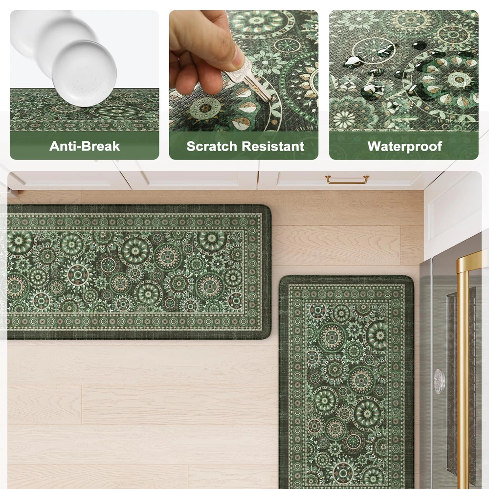 Anti-Fatigue Cushioned Boho Kitchen Rugs 2-Piece Floor Mats for Comfort
