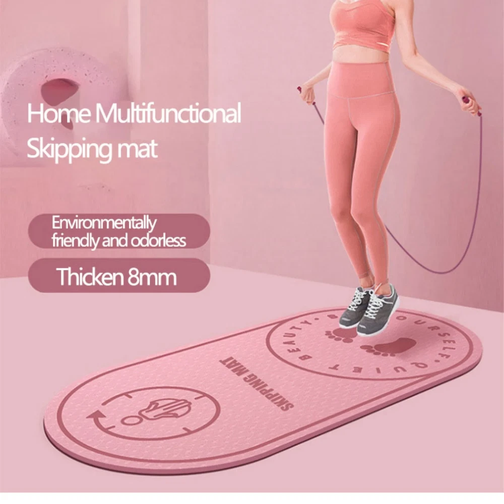 The product has received numerous positive reviews!!! Anti-noise Jump Rope Mat Tpe Non-slip Exercise Yoga Mat Home Gym Shock Absorption Pad Portable Outdoor Fitness Accessories The product will be unfolded and sent out beyond the size of the small package, so it will be folded and sent out, and creases cannot be avoided. Friends who mind should not purchase!!! Feature: * Want to jump rope at home but worry about noise? A rope skipping mat can make you jump rope without noise * It can also be used as a yoga mat * Waterproof and sweat proof, easy to clean * Jump rope mat size standard, adults and children can use * Choose the color you like:Pink,Gray * texture of material:TPE * Cushion size:127X61CM PREMIUM ECO-FRIENDLY MATERIAL:Yoga mat is made by premium TPE eco friendly material by TMT certified ,Thermoplastic Elastomers (TPE) are generally low modulus, flexible materials that can be stretched repeatedly providing superior durability, cushioning and slip-resistance.It's the latest technological improvement to traditional mats EXCELLENT STICKY NON-SLIP TEXTURE AND DOUBLE LAYER ANTI TEAR :Special sticky non slip texture on both sides and density higher than ordinary yoga mats, provides excellent traction and superior grip, best suitable to practice many forms of yoga. Non slip on wood floor, tile floor, cement floor,durable, no latex, high strength of tear resistance ,Moisture resistant, EXTRA THICK EXTRA LONG EXTRA WIDE:127x62cm offers adequate space to fit any type of exercise like yoga, skipping rope, pilates, bikram and fitness exercise, Offers the most comfortable experience for all level, the 8 mm extra thick, high density provides excellent cushioning and resilience. EXCELLENT CUSHIONING AND RESILIENCE : With 8 mm thickness and high resilience TPE material, protecting the safety of all levels of jump rope enthusiasts Care Instructions:Spot clean with damp cloth with cold water and mild detergent, Dry flat. Pls don't exposed to the sun for extended periods of time.
