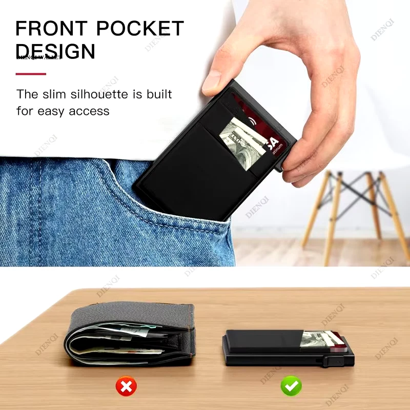 Store New Arrivals Add to Favorite View Feedback Contact Anti-Theft Cards Protectors Card Holder Minimalist Smart Wallet RFID Protection Aluminum Metal Box Cardholder Case Porte Carte Description main material Metallic origin Mainland China cn Guangdong closure type No Zipper item length 9.7 item width 6.5 shape Pillow gender Unisex hign-concerned chemical None material composition metal pattern type Solid style Business use Credit Card model CT-XKT item type Card & ID Holders place of origin China (mainland) item weight 0.1 choice yes • RFID Blocking Technology : Protects your credit cards from unauthorized scanning and theft. • Slim and Minimalist Design : Slim and compact design fits easily in your pocket or bag. • Luxury Metal Material : Durable and high-quality metal material adds a touch of luxury to your everyday carry. • Multiple Card Slots : Holds up to 5 cards, making it perfect for those who need to carry multiple cards. Materil : aluminum Size: 9.76cm (3.8 in) / 6.36cm (2.5 in) / 1.12cm (0.44 in) Number : DIENQI Card Wallet CT-XKT Feature : This DIENQI WALLET can hold 5-6 cards and some paper money This Is Not a Simple Metal Card Wallet It Also Has Anti-theft Function Note: to prevent theft refers to the credit card information being stolen. This Product Has Two Model: Style A and Style B Style B ABOUT US We offer the best prices around on high quality products. Our E-store includes media such as books, movies, music and games while offering electronics, toys, sporting apparel, clothing, tools, general home, garden items and more. SHIPPING We are always working hard to ensure your package arrives as soon as possible. Please understand that some factors like weather, high postal traffic, and the performance of shipping companies are outside of our control. RETURNS We offer a 30-Day Return Policy on items which you are not completely satisfied with. You have the option for a full-refund or an exchange of the item. No returns are available on items shipped outside of the USA. PAYMENT We accept PayPal. CONTACT US This page content is yet to come Please ad us to your favorite seller and visit again later Thank You CUSTOMER SATISFACTION We try our very best to make sure every customer is completely satisfied. If there's a problem, message us! We're happy to help.