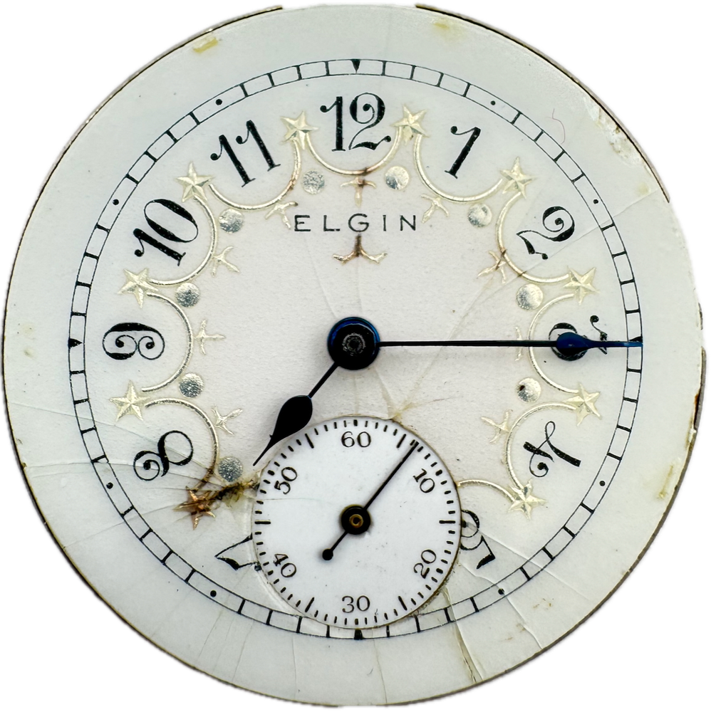 Antique 0 Size Elgin Multicolor Mechanical Pocket Watch Movement Grade 324 Product Description Item: Pocket Watch Movement Brand: Elgin Model: Multicolor Movement: Mechanical Gender: Men's Grade: Grade 324 Size: 0 Size Product Measurements Diameter: 29.5mm Product Condition Overall Condition: Fair, overall condition for its age. Functions: Running, but may be in need of service. This means, it can run unreliably, start or stop and timekeeping is not guaranteed. Dial: The dial has light scratches on it. Hands: There is discoloration on the hands.